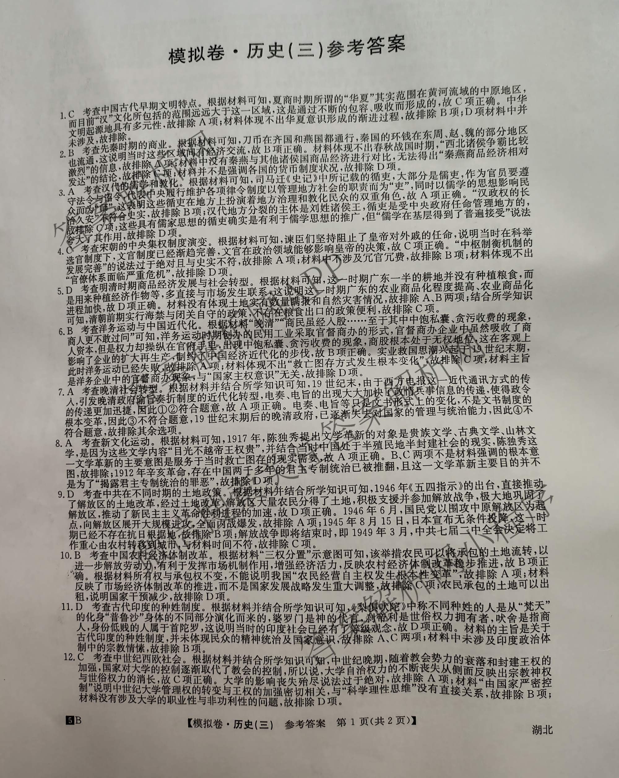 - 2025届全国高考分科模拟调研卷(三)3历史(湖北)答案