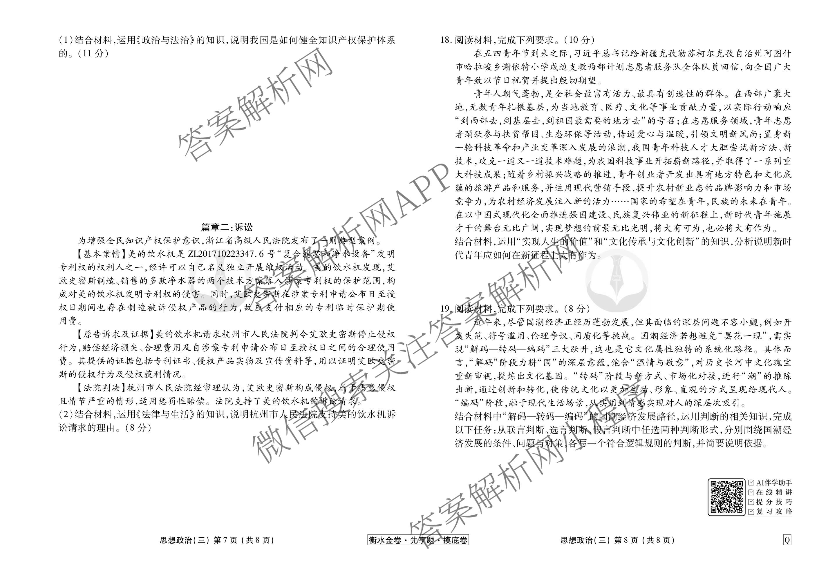 衡水金卷先享题·摸底卷2025-2026学年度高三一轮复习摸底测试卷(三)3政治(Q)试题,目前衡水金卷先享题答案网已经汇总了衡水金卷先享题·摸底卷2025-2026学年度高三一轮复习摸底测试卷(三)3政治(Q)试题的各科答案和试卷,获取更多衡水金卷先享题答案解析,请在关注本站。