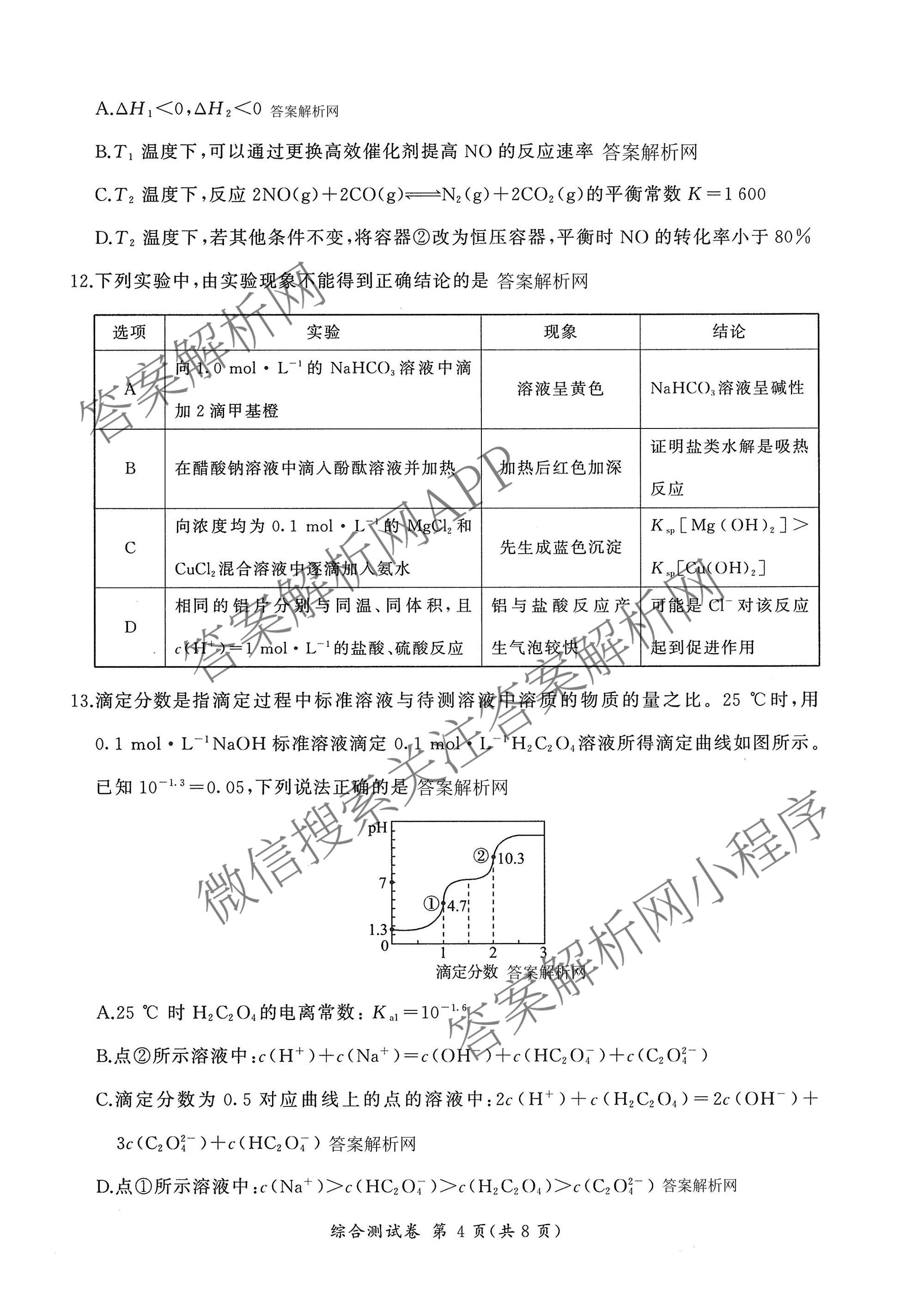 - 2025-2026[百师联盟]学年[高二]上学期综合测试卷化学(鲁科版90分钟·多选)答案