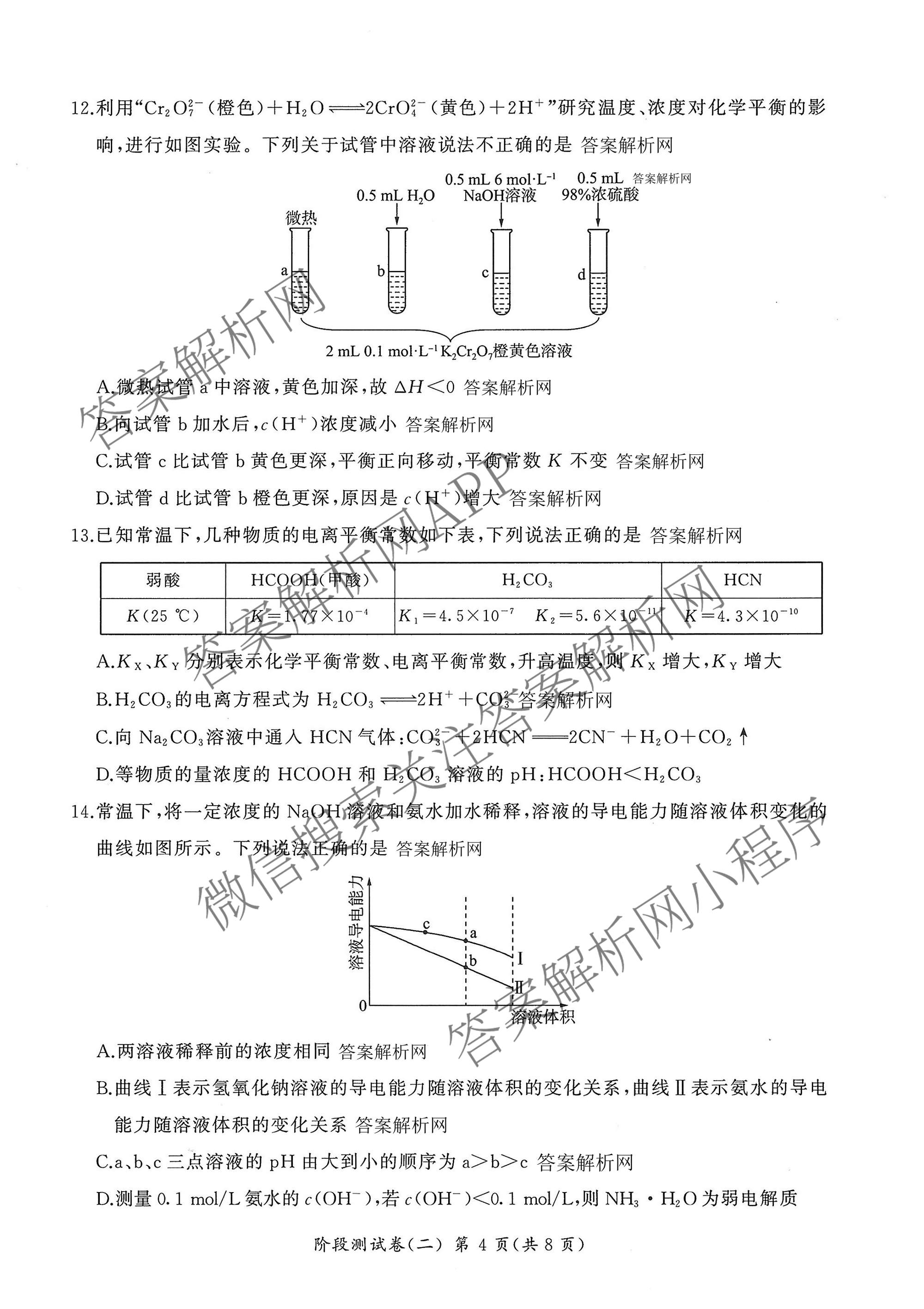 百师联盟2025-2026学年高二上学期阶段测试卷(二)2化学(人教版75分钟·单选)试题,目前衡水金卷先享题答案网已经汇总了百师联盟2025-2026学年高二上学期阶段测试卷(二)2化学(人教版75分钟·单选)试题的各科答案和试卷,获取更多百师联盟答案解析,请在关注本站。