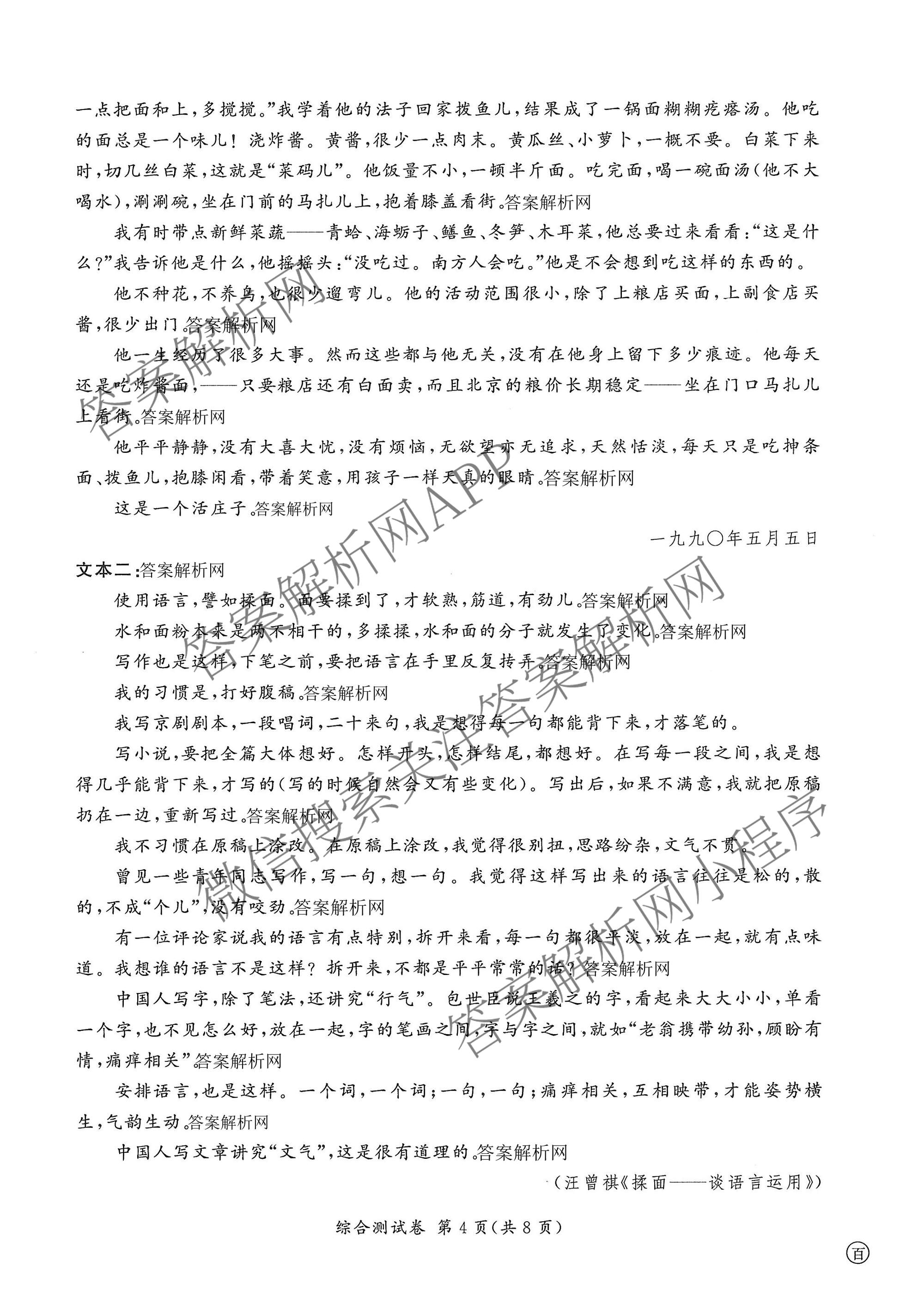 - (百师联盟)2025-2026学年[高二]上学期综合测试卷语文(百)答案