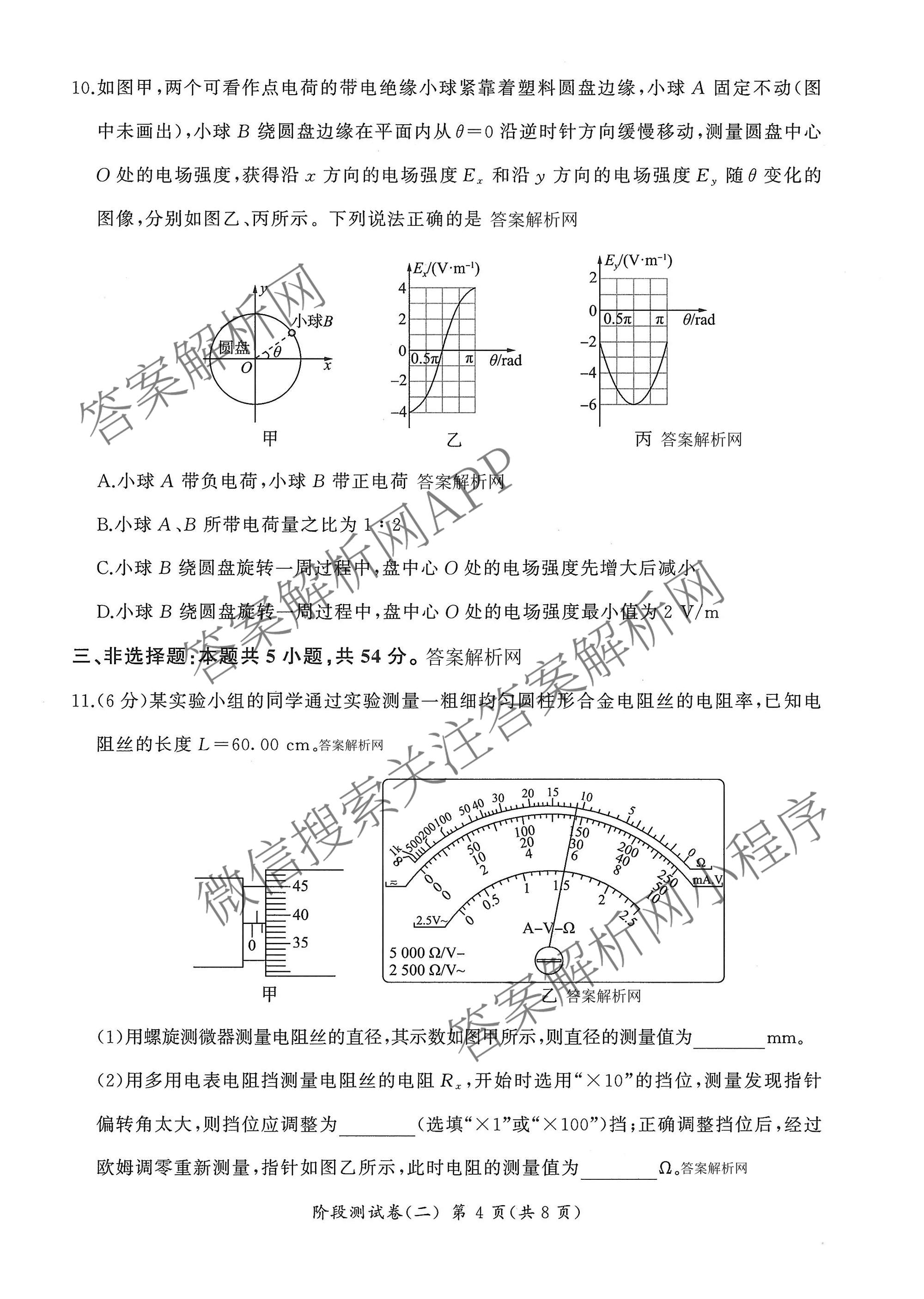 - (百师联盟)2025-2026学年[高二]上学期阶段测试卷(二)2物理(90分钟多选)答案