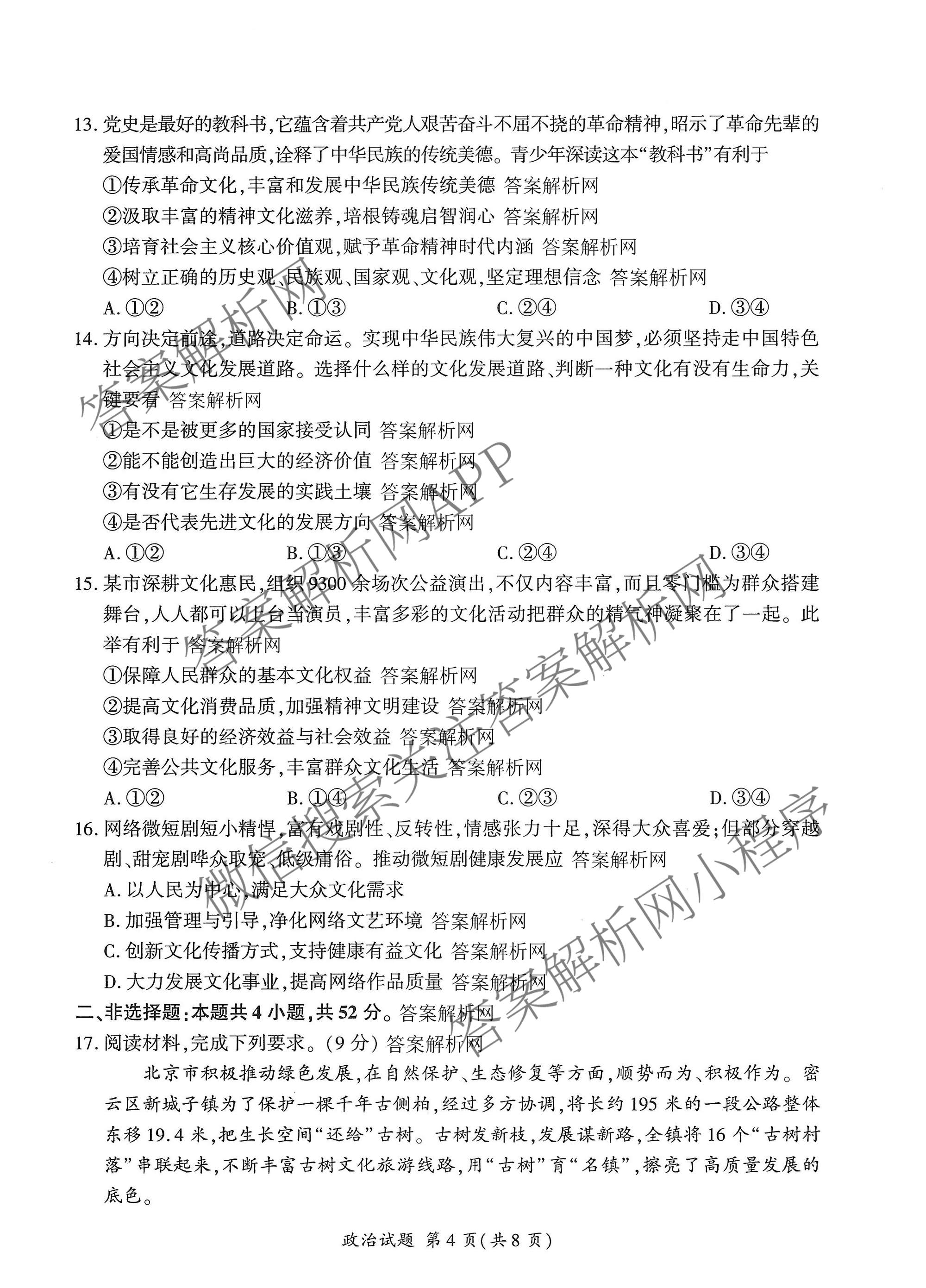 百师联盟2025-2026学年高二上学期阶段测试卷(二)2政治(75分钟)试题,目前衡水金卷先享题答案网已经汇总了百师联盟2025-2026学年高二上学期阶段测试卷(二)2政治(75分钟)试题的各科答案和试卷,获取更多百师联盟答案解析,请在关注本站。