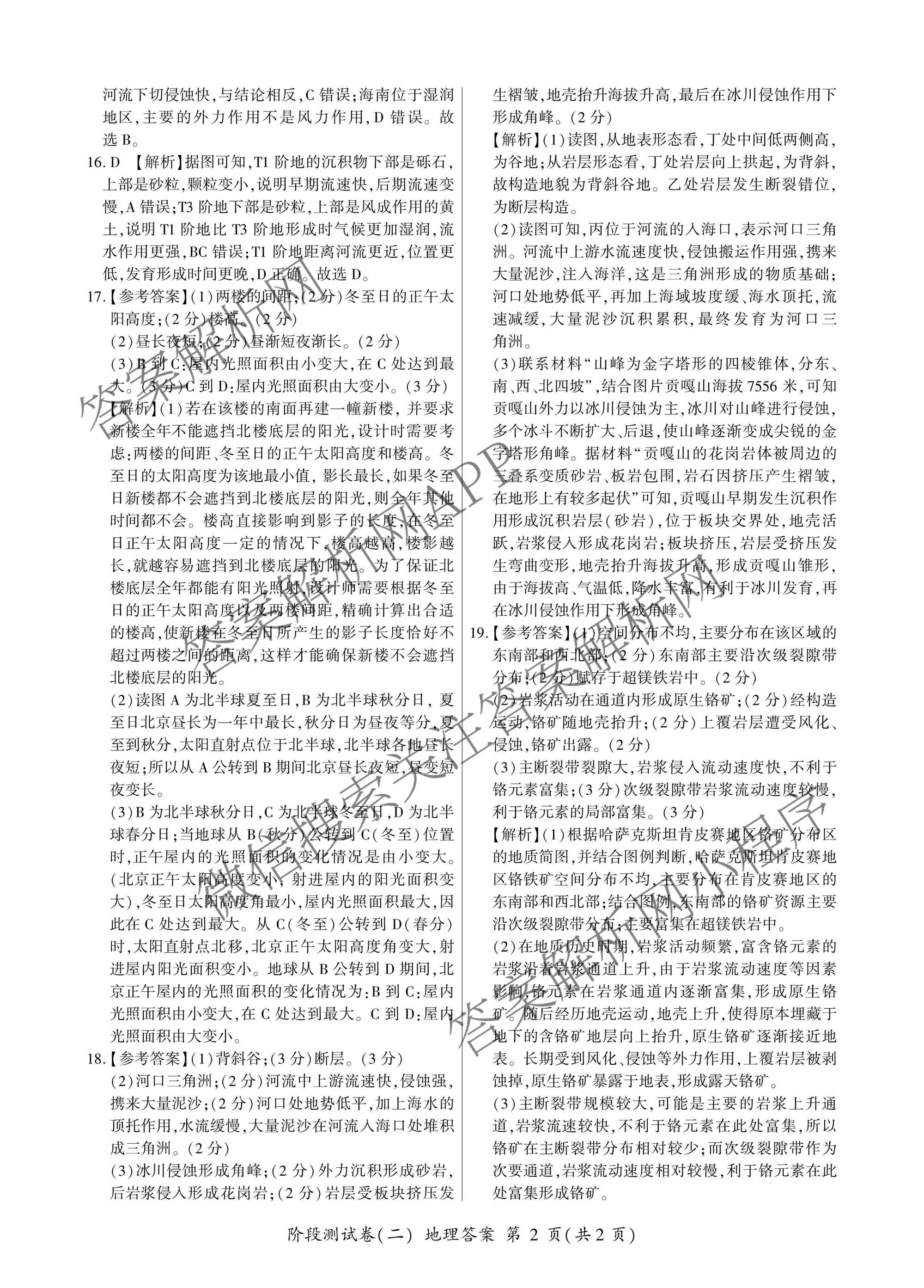 - [高二](百师联盟)2025~2026学年上学期阶段测试卷(二)2地理(鲁教版75分钟)答案