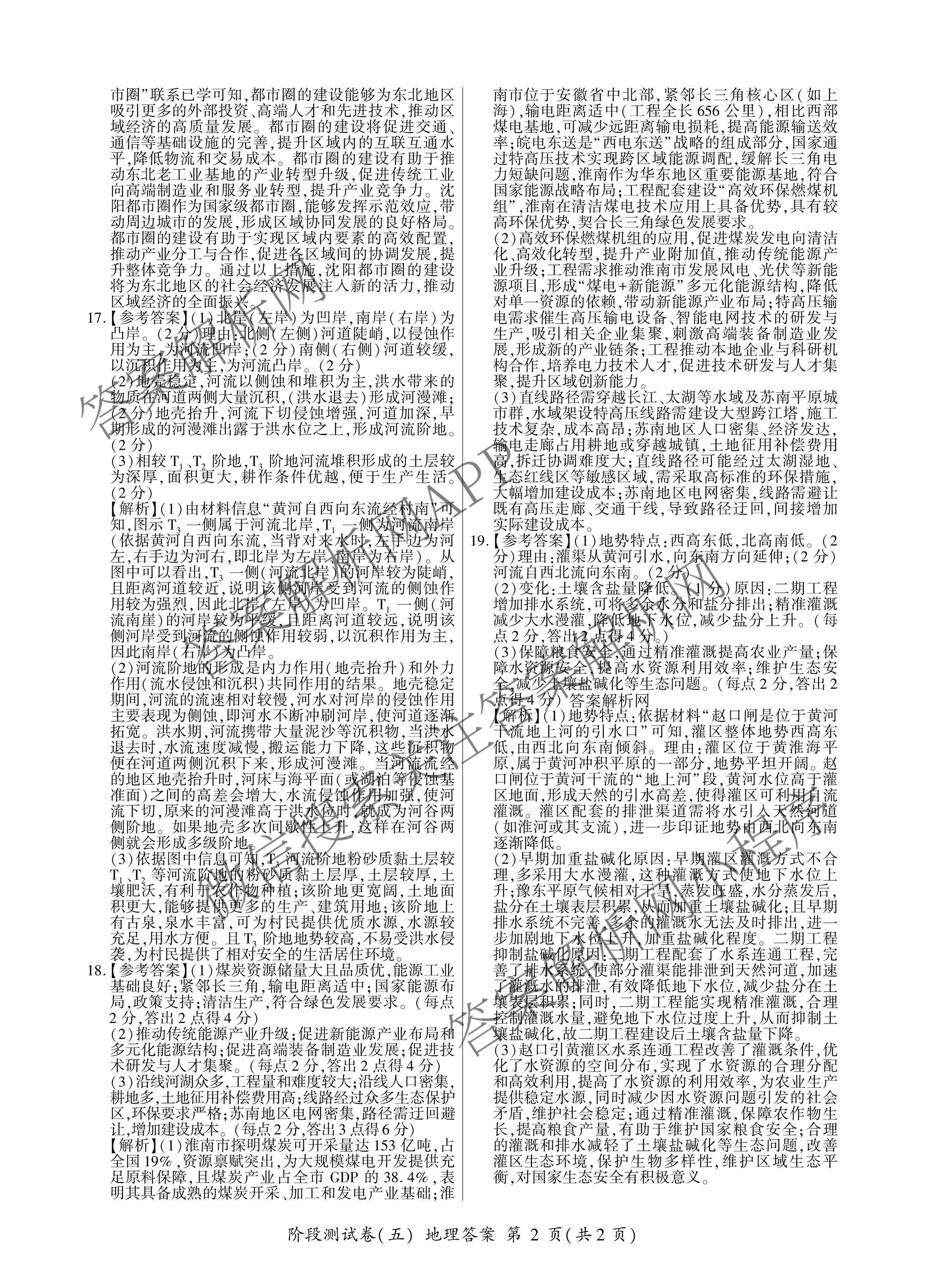 - 2025-2026百师联盟学年[高二]上学期综合测试卷地理(湘教版75分钟)答案