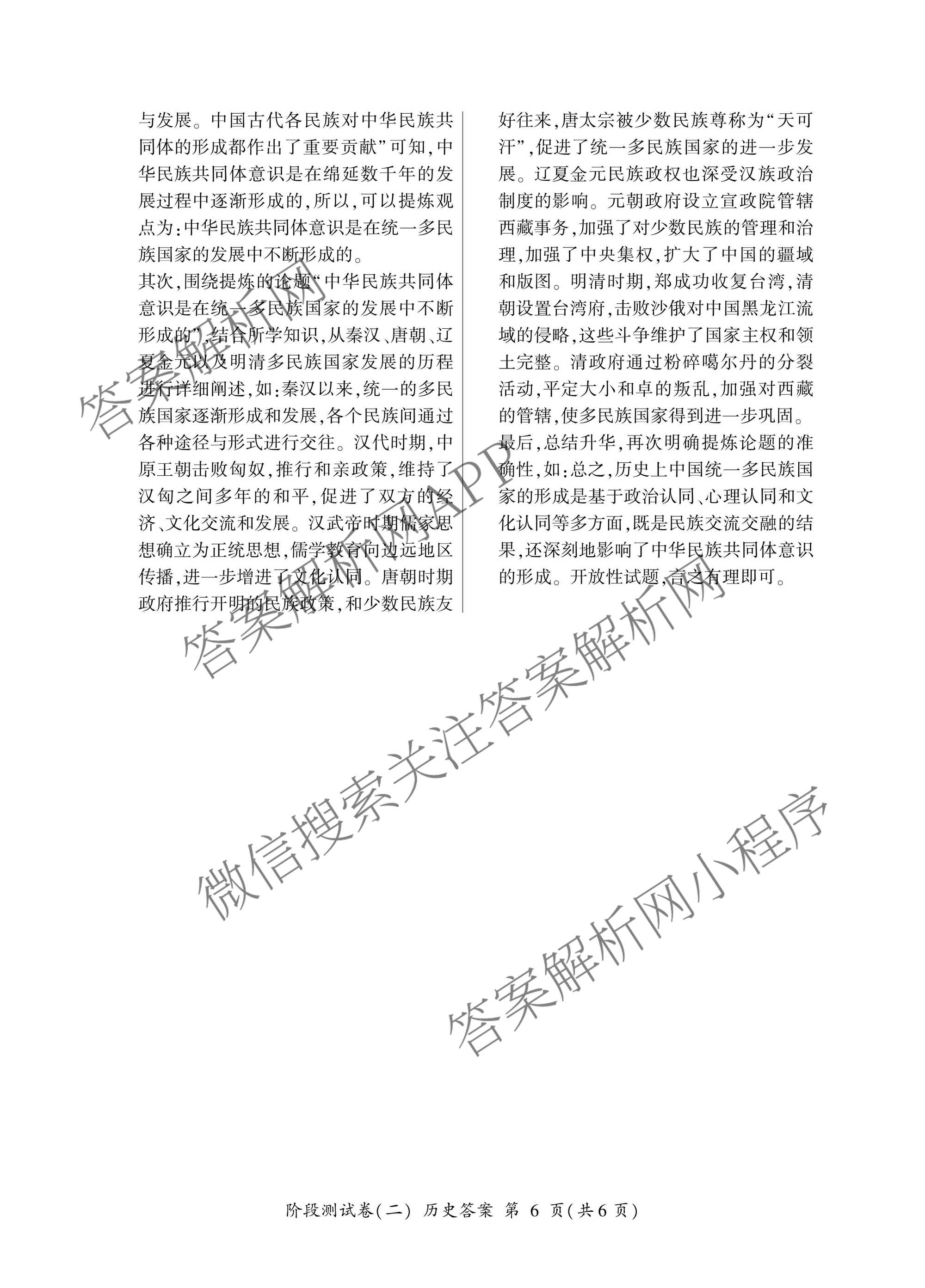 - [高二][百师联盟]2025-2026学年上学期阶段测试卷(二)2历史(90分钟)答案