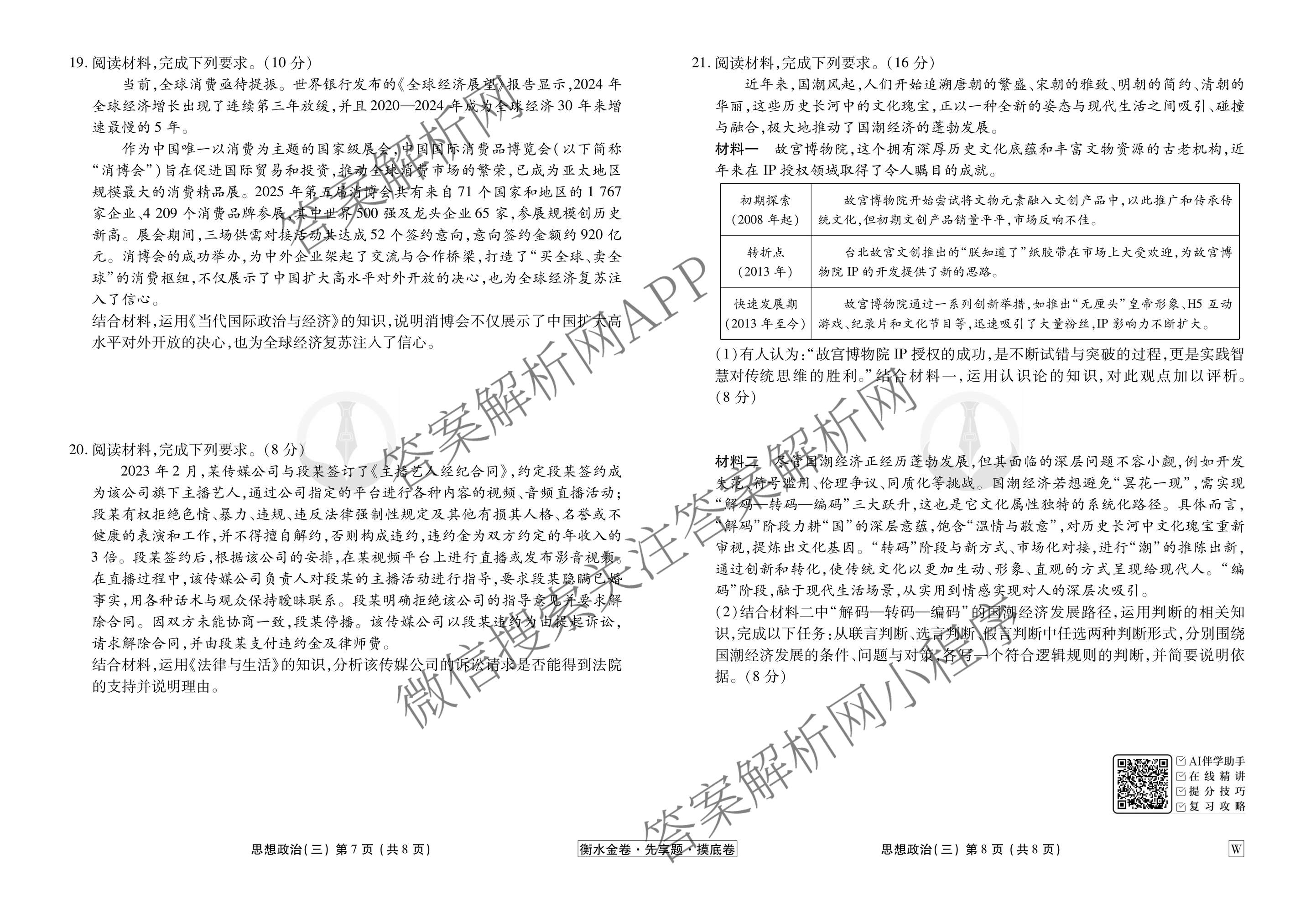 - 2025~2026[高三](衡水金卷先享题)·摸底卷学年度一轮复习摸底测试卷(三)3政治(GD)答案