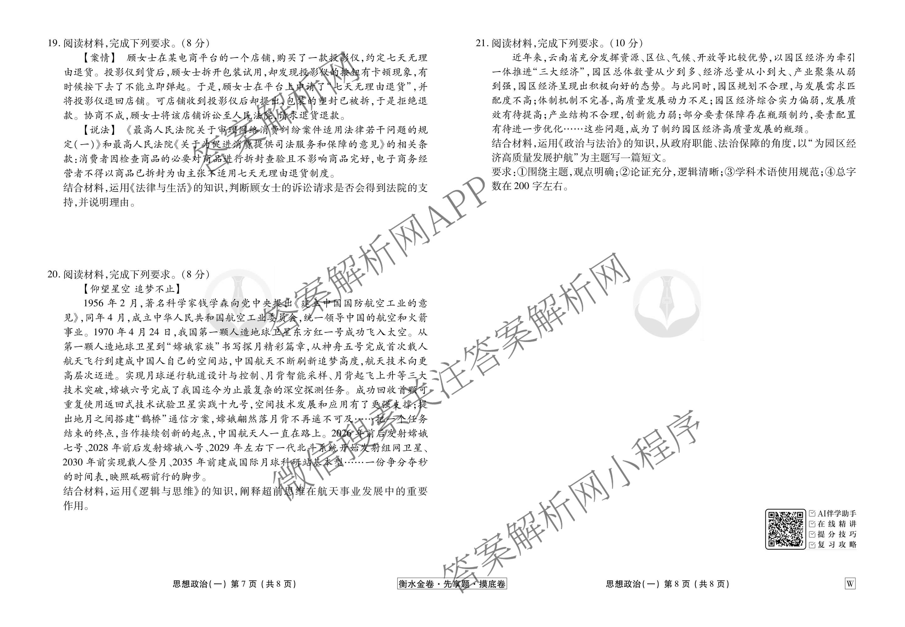 衡水金卷先享题·摸底卷2025-2026学年度高三一轮复习摸底测试卷(一)1政治(W)试题,目前衡水金卷先享题答案网已经汇总了衡水金卷先享题·摸底卷2025-2026学年度高三一轮复习摸底测试卷(一)1政治(W)试题的各科答案和试卷,获取更多衡水金卷先享题答案解析,请在关注本站。