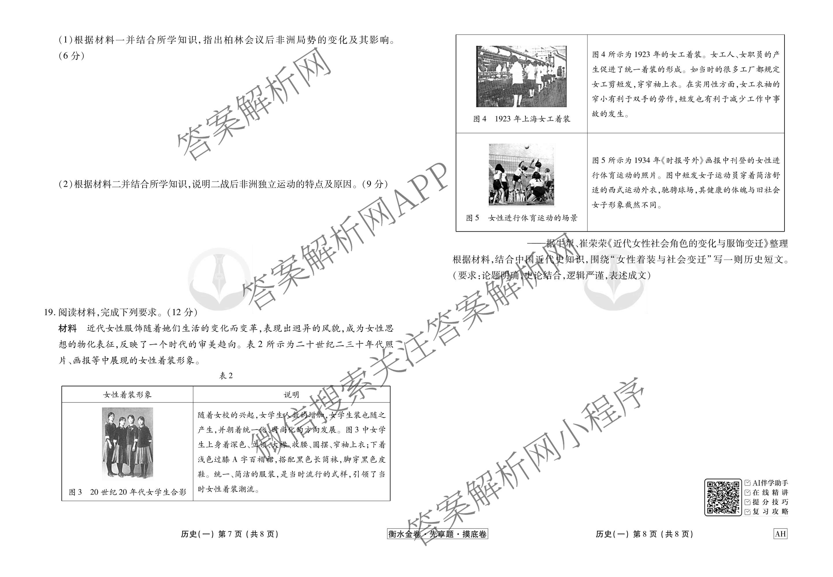 衡水金卷先享题·摸底卷2025-2026学年度高三一轮复习摸底测试卷(一)1历史(AH)试题,目前衡水金卷先享题答案网已经汇总了衡水金卷先享题·摸底卷2025-2026学年度高三一轮复习摸底测试卷(一)1历史(AH)试题的各科答案和试卷,获取更多衡水金卷先享题答案解析,请在关注本站。