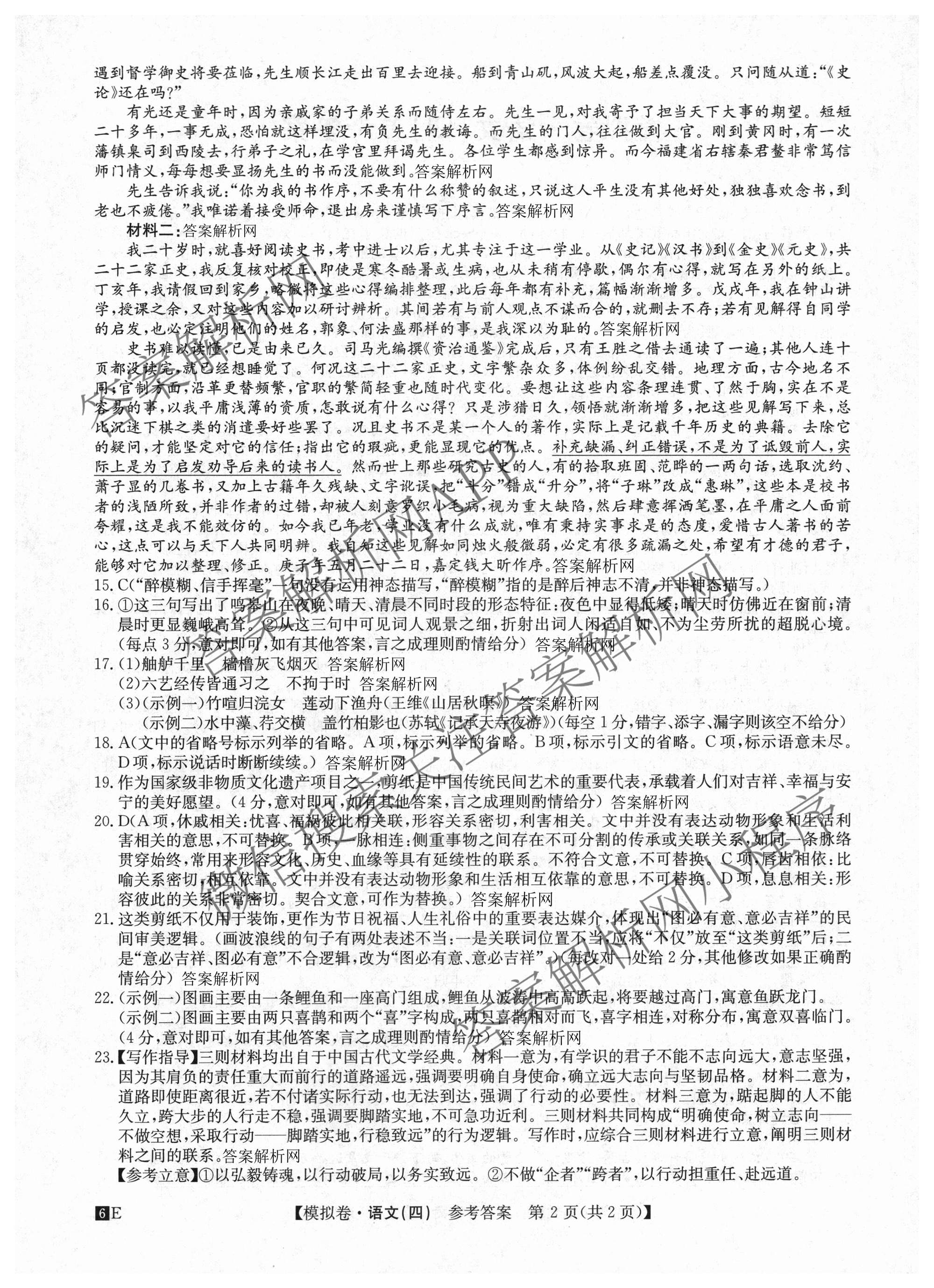 2026年[全国高考仿真模拟卷](四)4语文答案