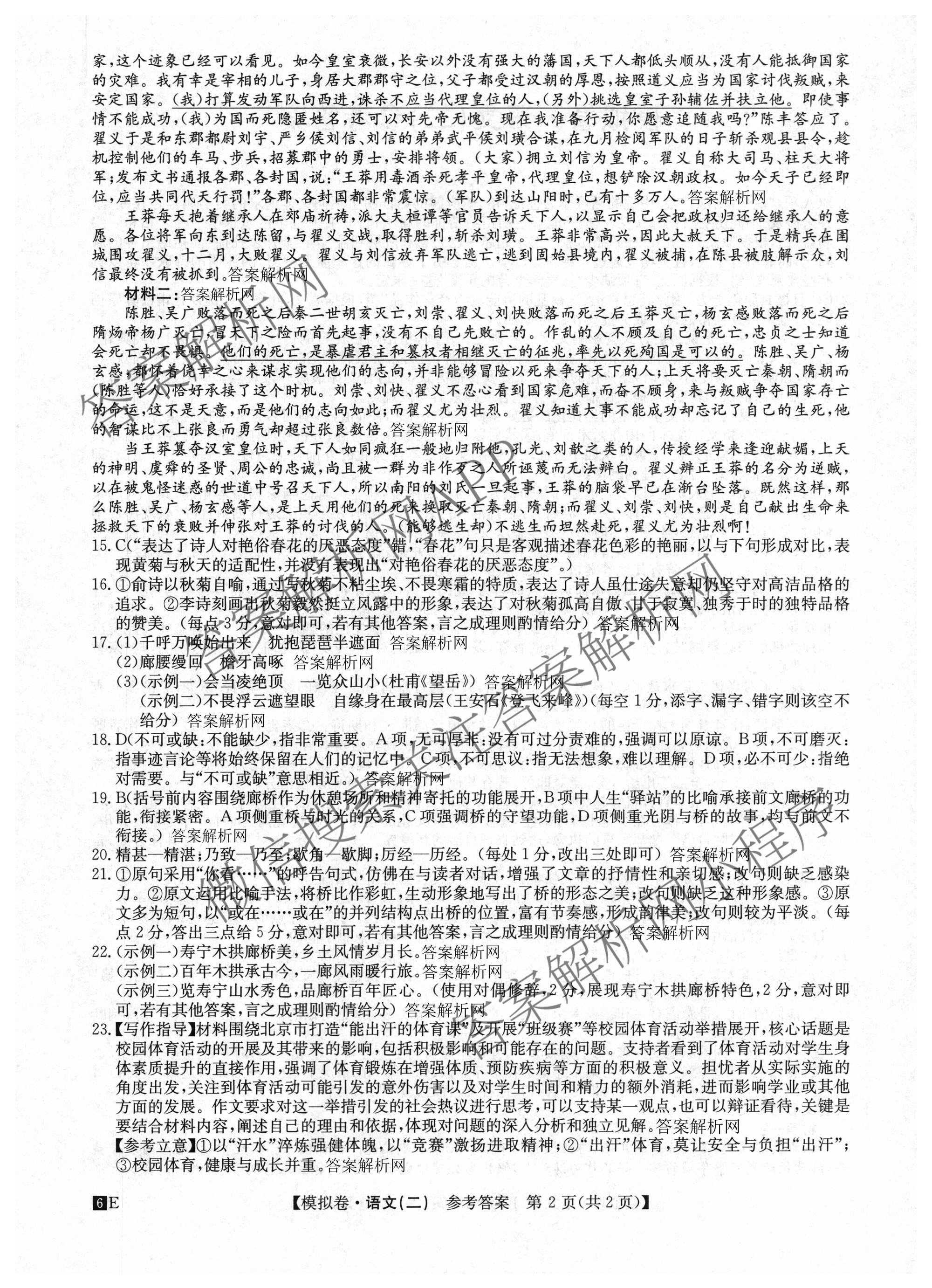 - (高三)2026年(全国高考仿真模拟卷)(二)2语文答案