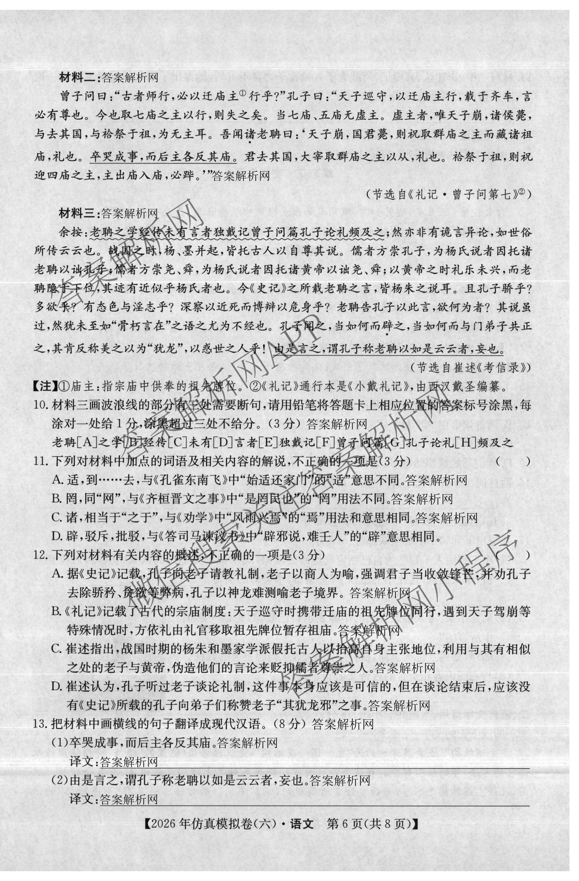 2026年[全国高考仿真模拟卷](六)6语文试题