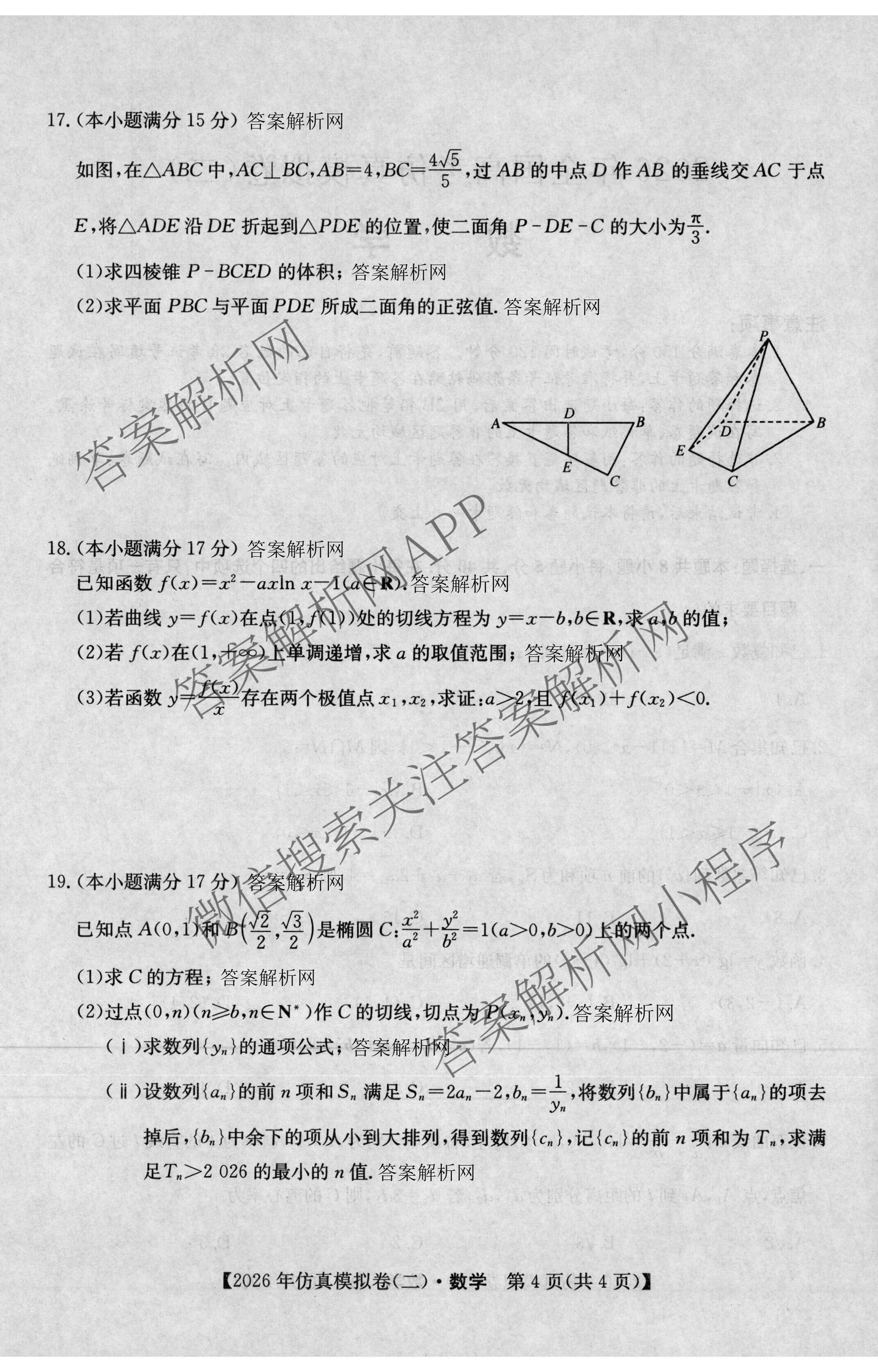 2026年全国高考仿真模拟卷(二)2数学试题,目前衡水金卷先享题答案网已经汇总了2026年全国高考仿真模拟卷(二)2数学试题的各科答案和试卷,获取更多全国高考仿真模拟卷答案解析,请在关注本站。