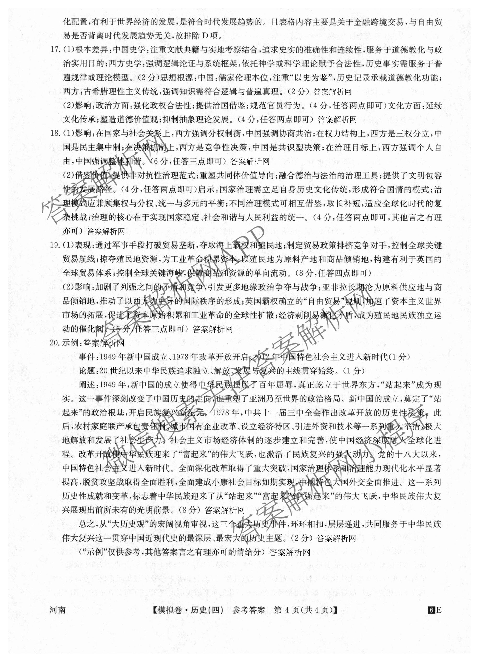 2026年普通高中学业水平选择性考试仿真模拟卷(四)4历史(河南)答案