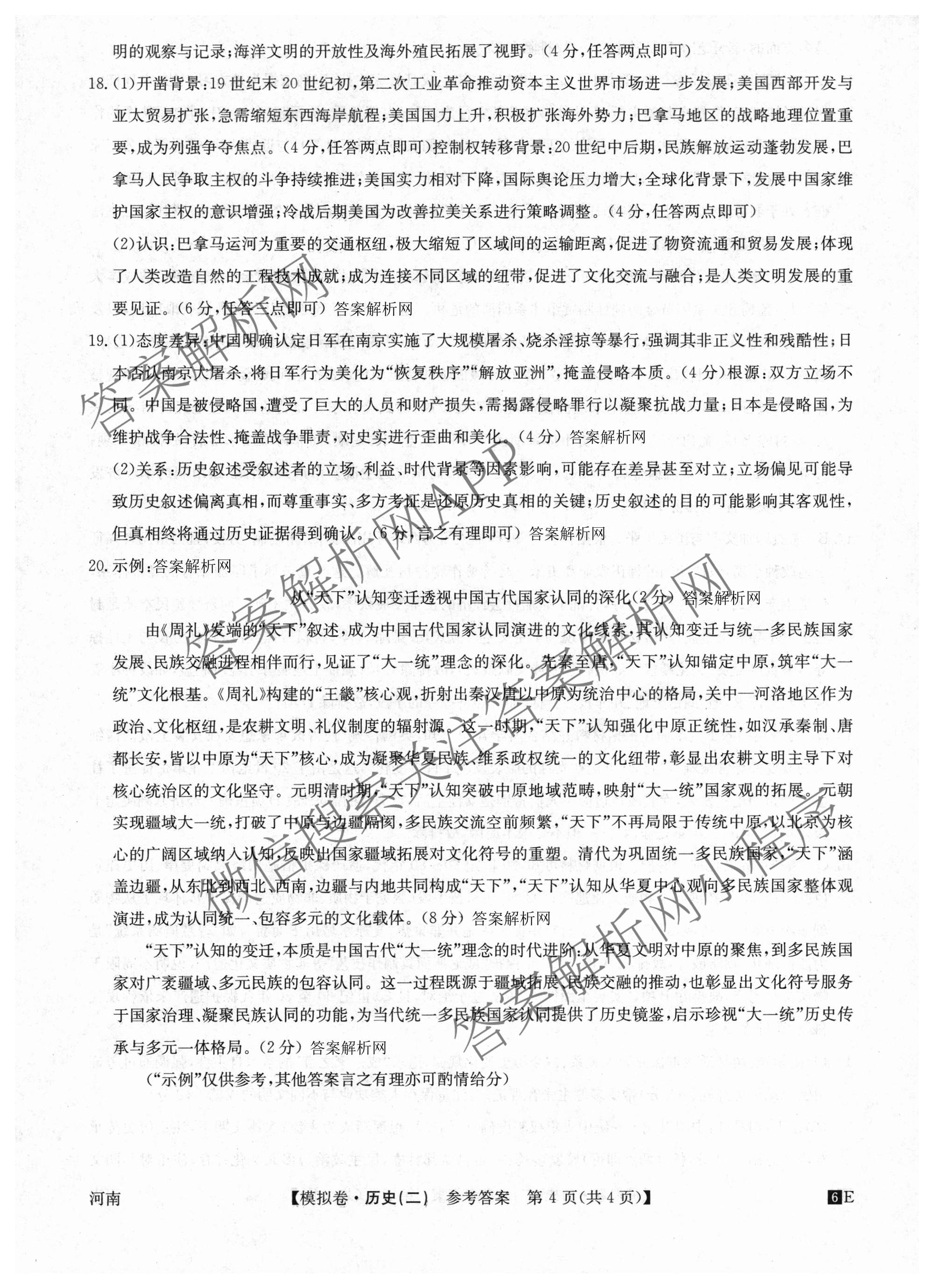 - (高三)2026年普通高中学业水平选择性考试仿真模拟卷(二)2历史(河南)答案