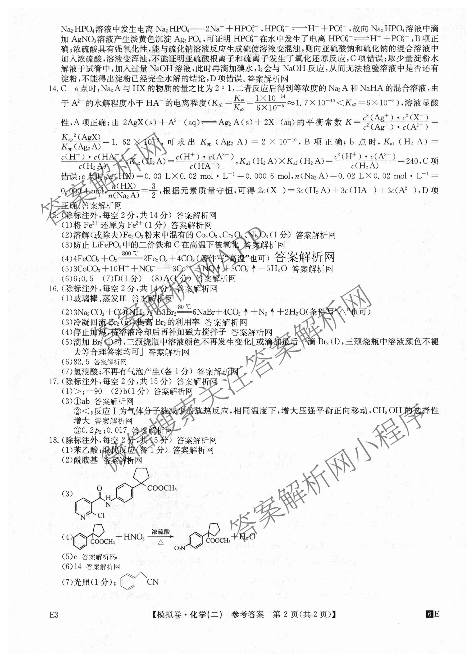 - (高三)2026年普通高中学业水平选择性考试仿真模拟卷(二)2化学(E3)答案