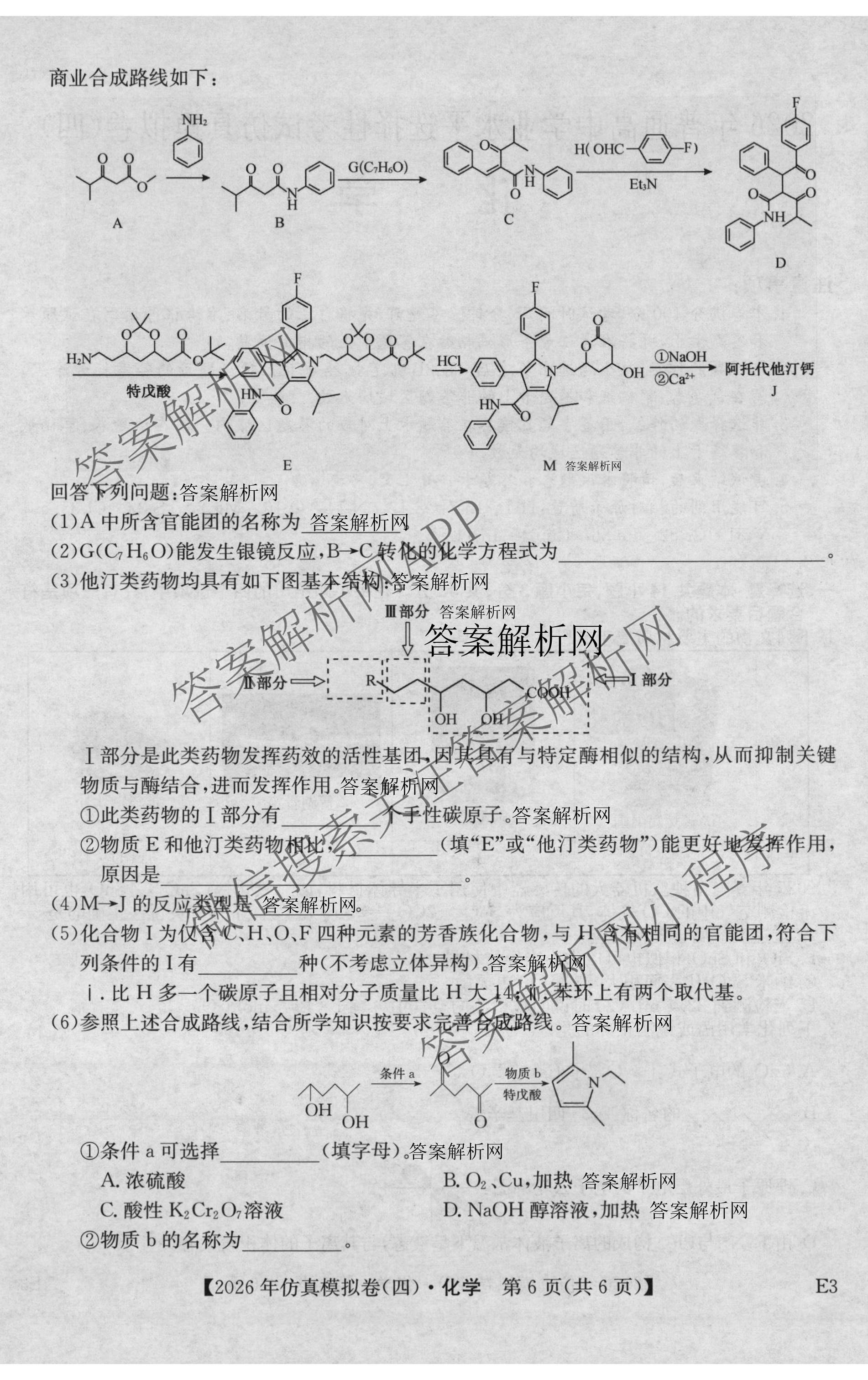 - [高三]2026年普通高中学业水平选择性考试仿真模拟卷(四)4化学(E2)答案