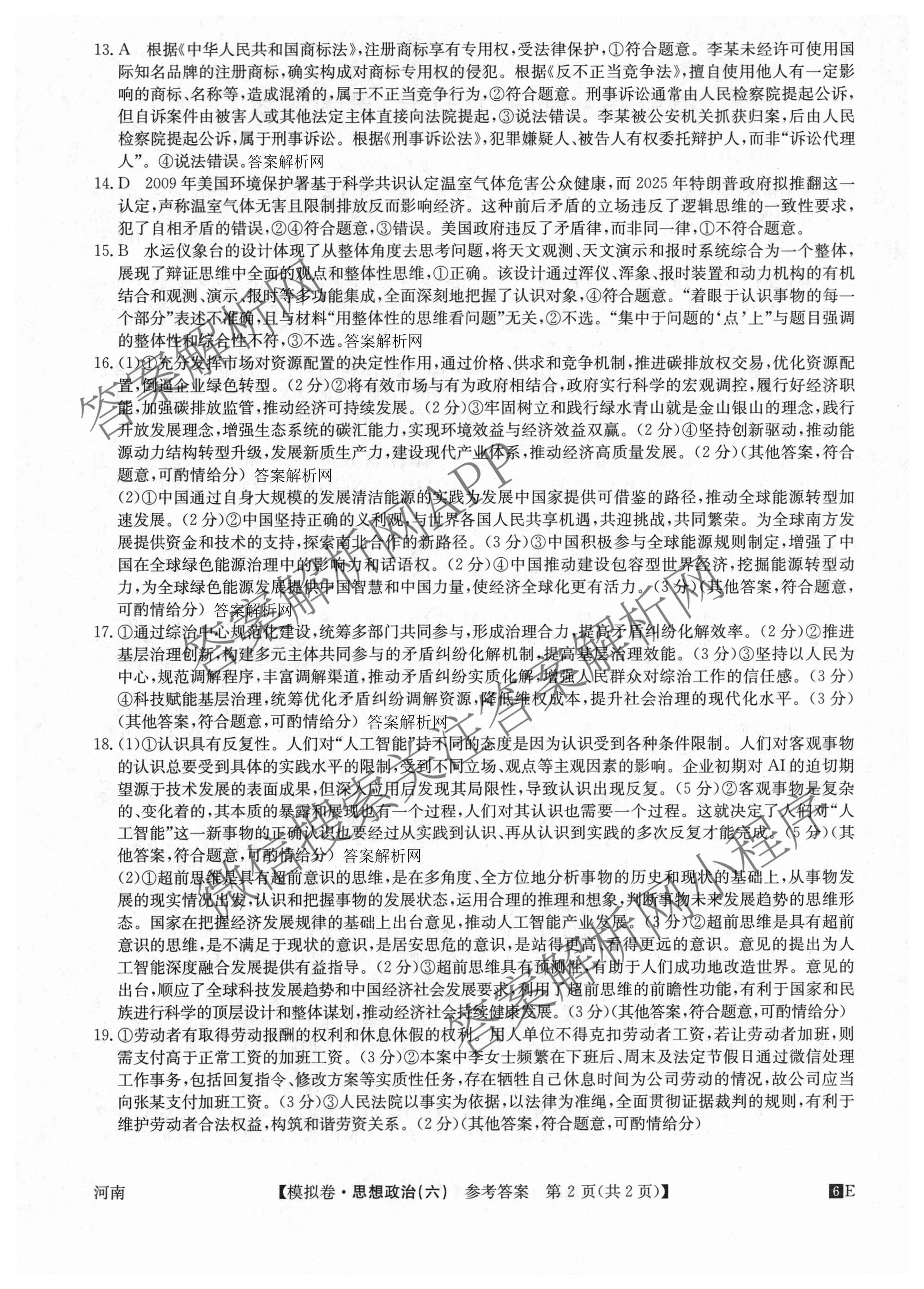 2026年普通高中学业水平选择性考试仿真模拟卷(六)6政治(河南)答案