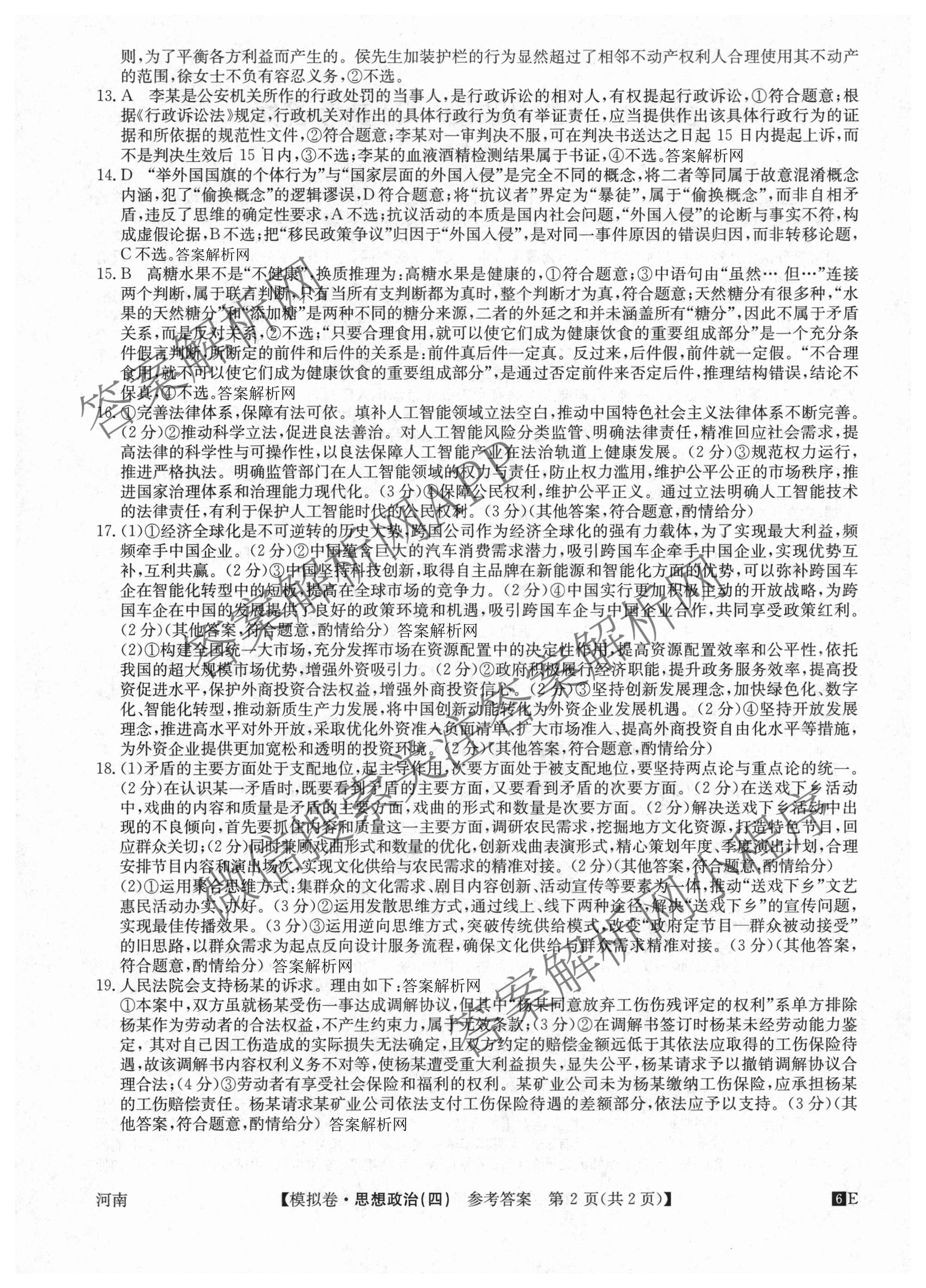 - (高三)2026年普通高中学业水平选择性考试仿真模拟卷(四)4政治(河南)答案