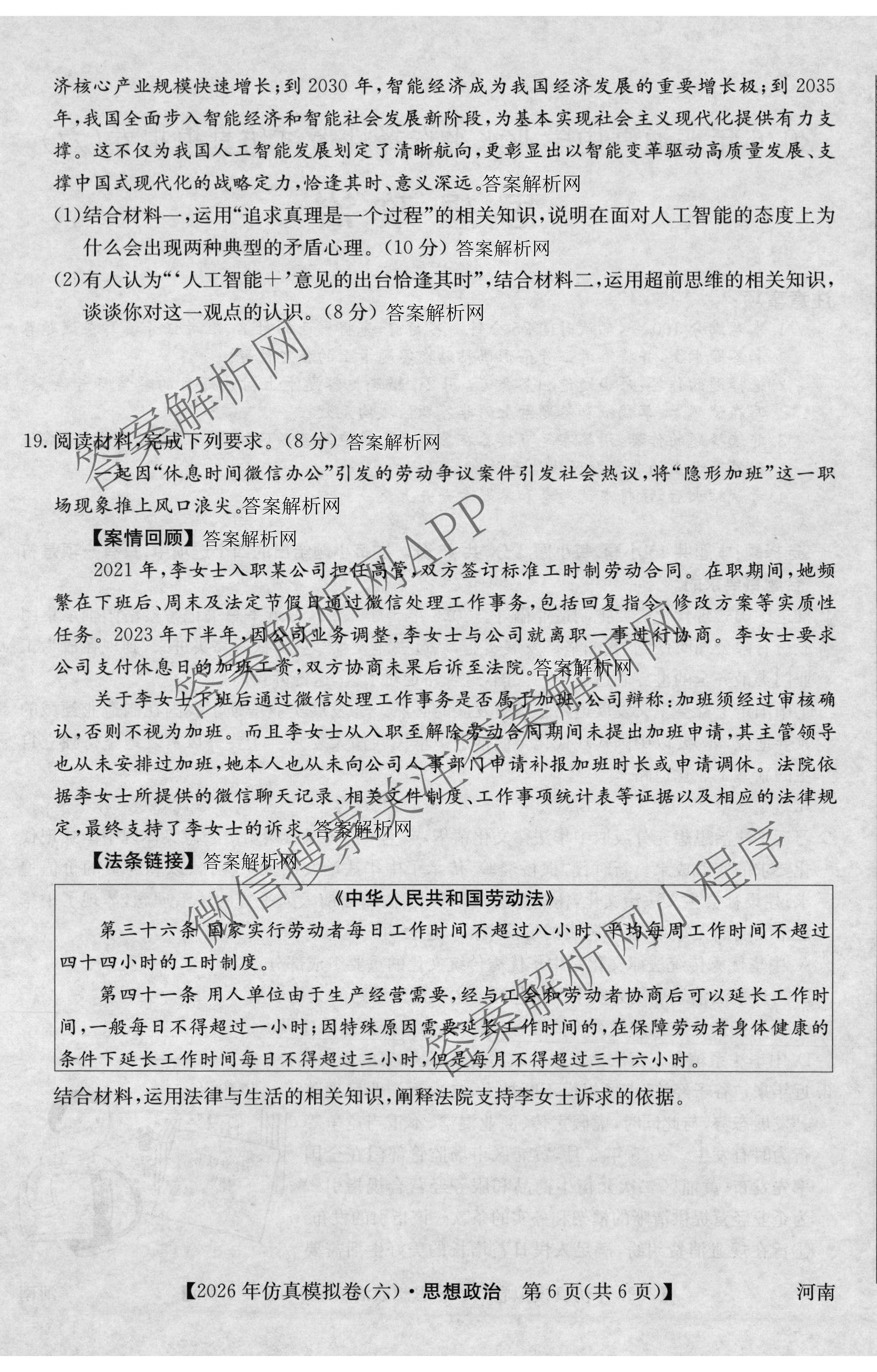 - 2026年普通高中学业水平选择性考试仿真模拟卷(六)6政治(河南)答案