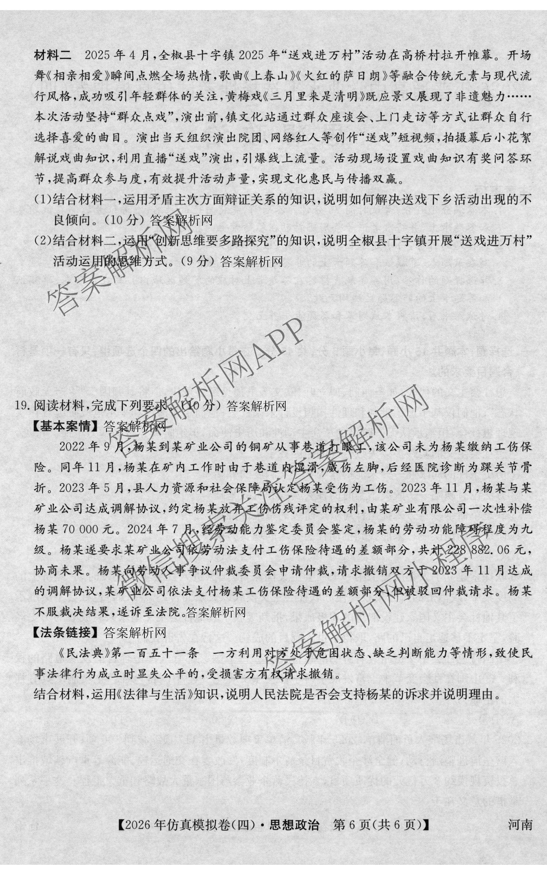 2026年普通高中学业水平选择性考试仿真模拟卷(四)4政治(河南)试题,目前衡水金卷先享题答案网已经汇总了2026年普通高中学业水平选择性考试仿真模拟卷(四)4政治(河南)试题的各科答案和试卷,获取更多全国高考仿真模拟卷答案解析,请在关注本站。