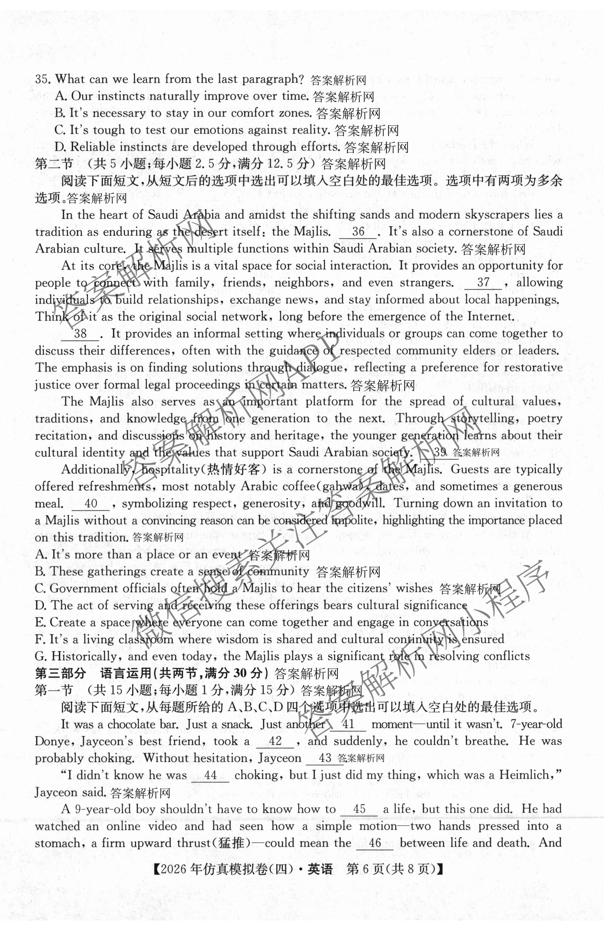- 2026年[全国高考仿真模拟卷](四)4英语答案