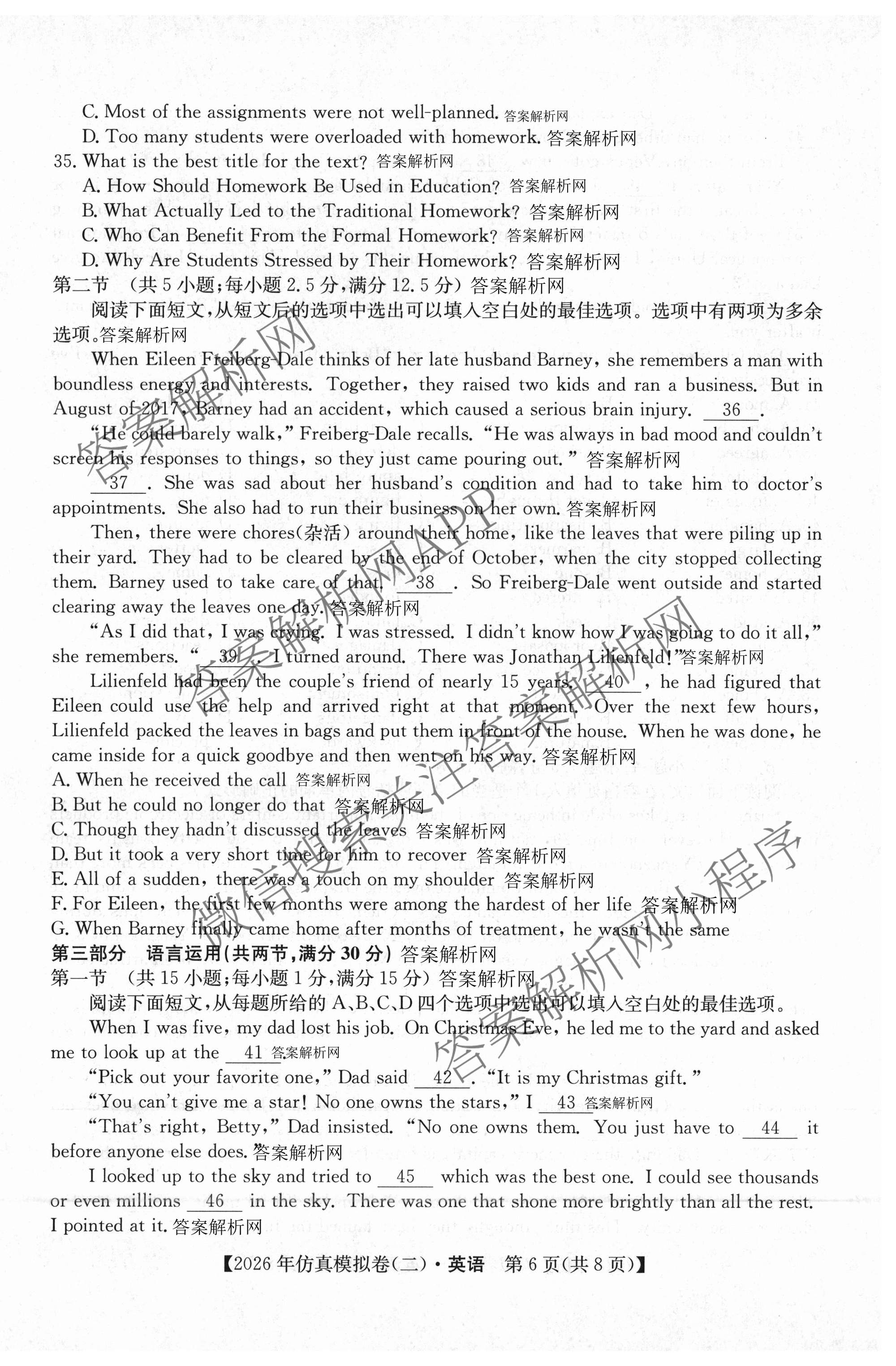 - 2026年(全国高考仿真模拟卷)(二)2英语答案
