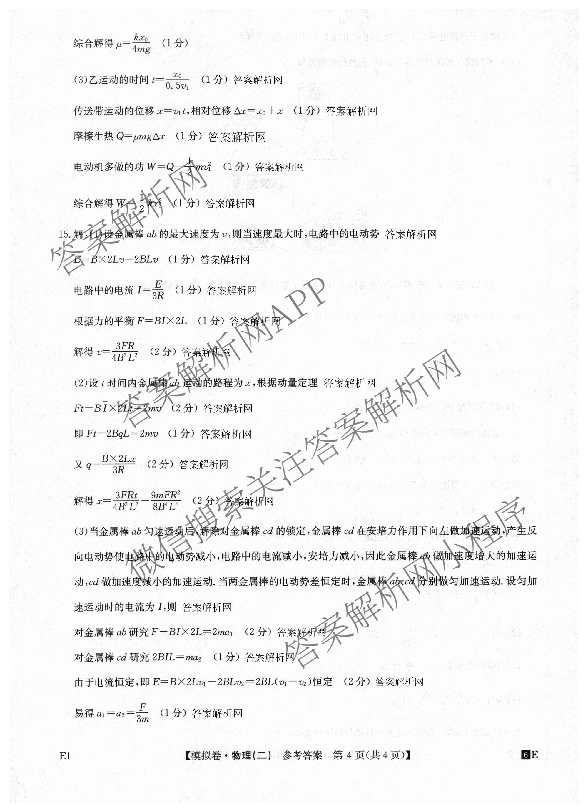 2026年普通高中学业水平选择性考试仿真模拟卷(二)2物理(E1)答案,目前衡水金卷先享题答案网已经汇总了2026年普通高中学业水平选择性考试仿真模拟卷(二)2物理(E1)答案的各科答案和试卷,获取更多全国高考仿真模拟卷答案解析,请在关注本站。