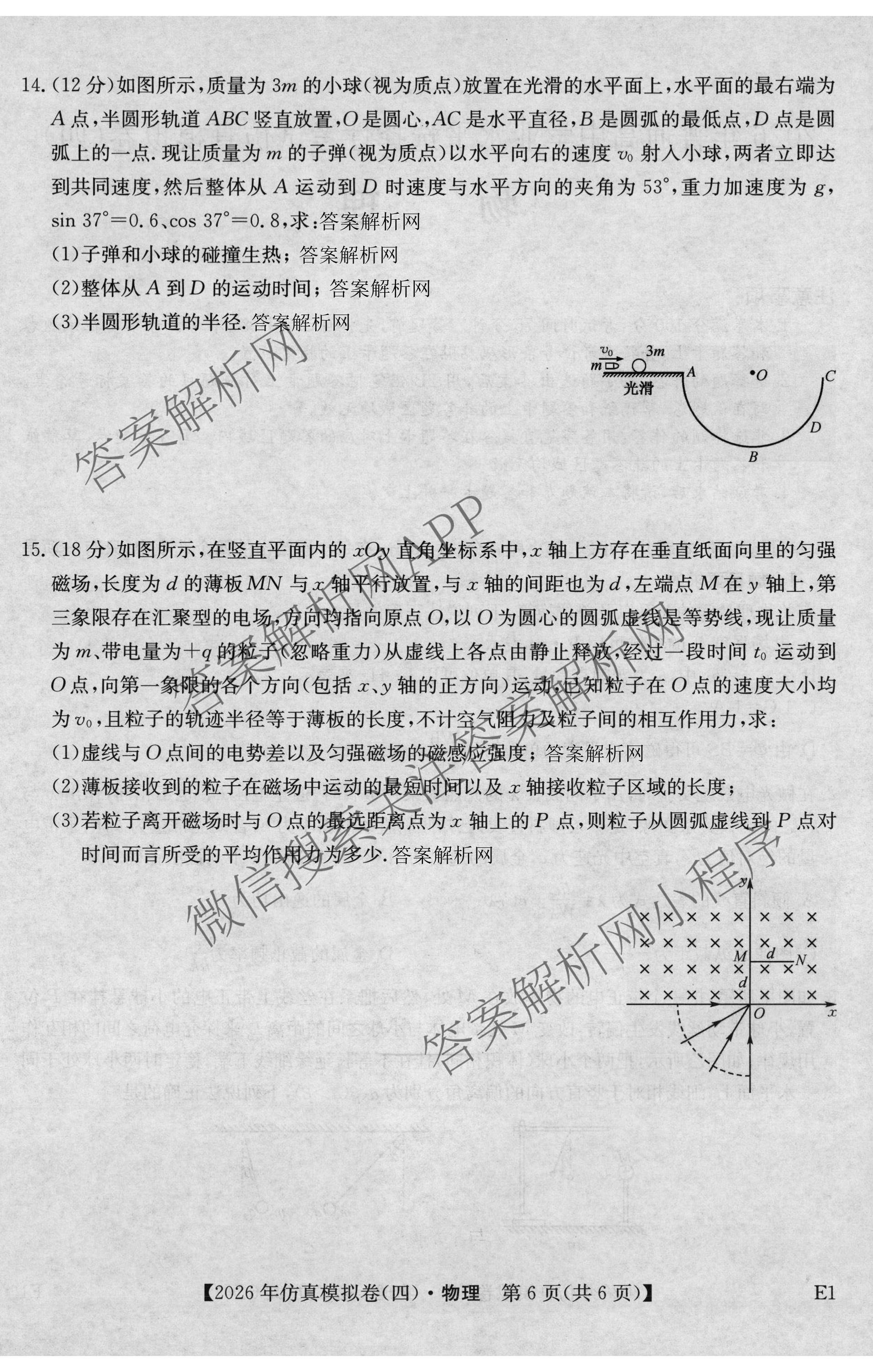 2026年普通高中学业水平选择性考试仿真模拟卷(四)4物理(E1)试题,目前衡水金卷先享题答案网已经汇总了2026年普通高中学业水平选择性考试仿真模拟卷(四)4物理(E1)试题的各科答案和试卷,获取更多全国高考仿真模拟卷答案解析,请在关注本站。