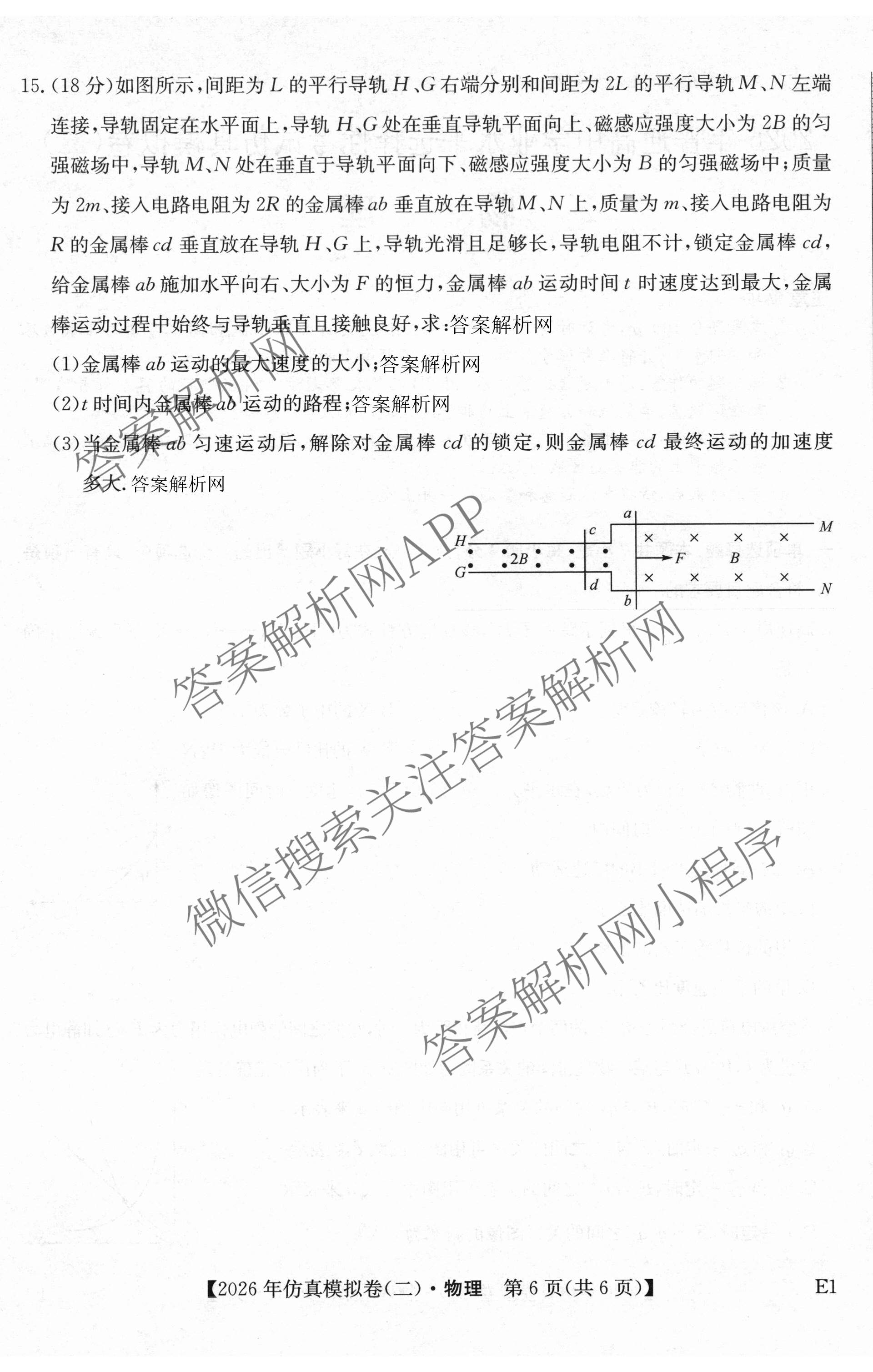 2026年普通高中学业水平选择性考试仿真模拟卷(二)2物理(E1)试题,目前衡水金卷先享题答案网已经汇总了2026年普通高中学业水平选择性考试仿真模拟卷(二)2物理(E1)试题的各科答案和试卷,获取更多全国高考仿真模拟卷答案解析,请在关注本站。