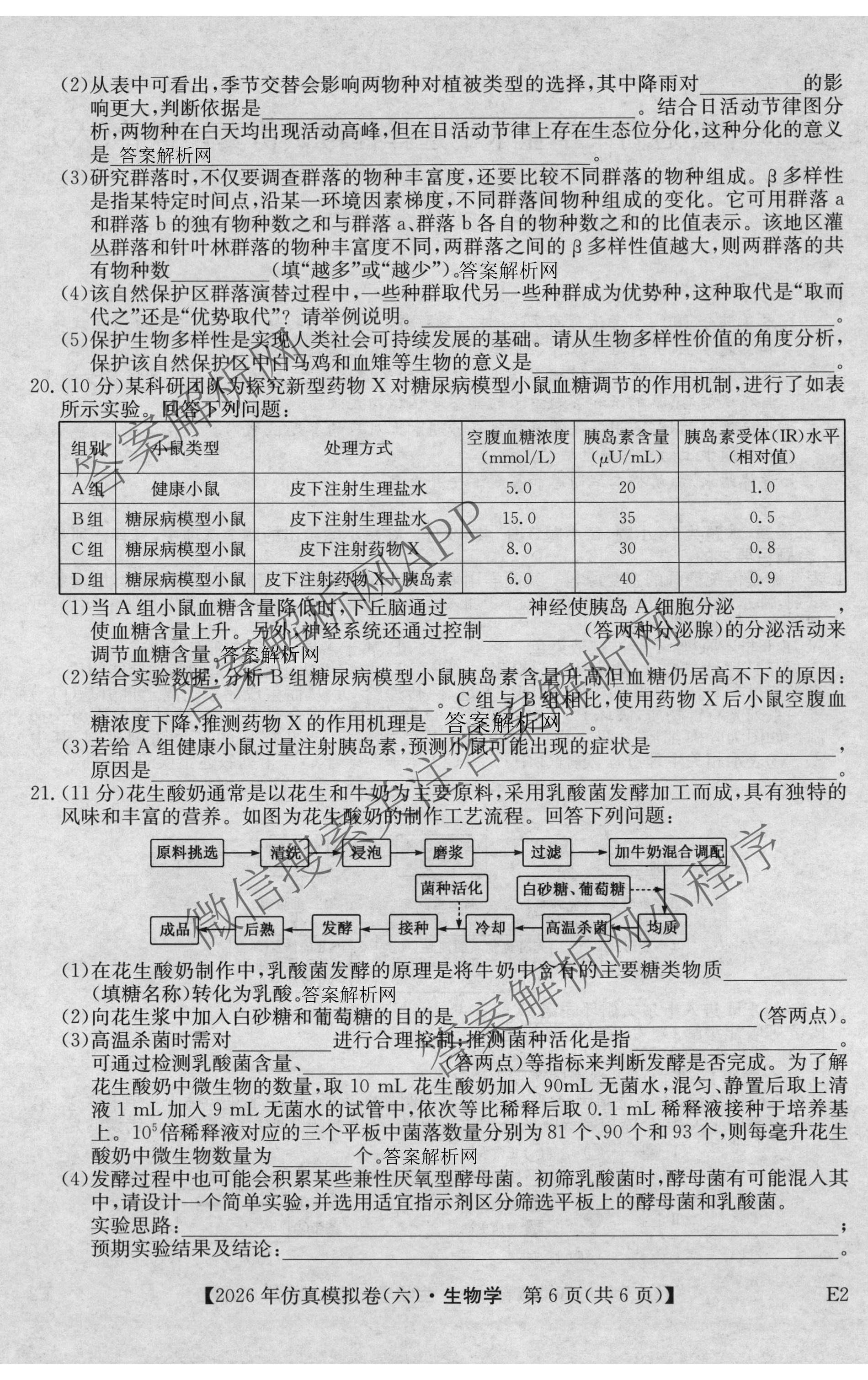 2026年普通高中学业水平选择性考试仿真模拟卷(六)6生物(E2)试题,目前衡水金卷先享题答案网已经汇总了2026年普通高中学业水平选择性考试仿真模拟卷(六)6生物(E2)试题的各科答案和试卷,获取更多全国高考仿真模拟卷答案解析,请在关注本站。