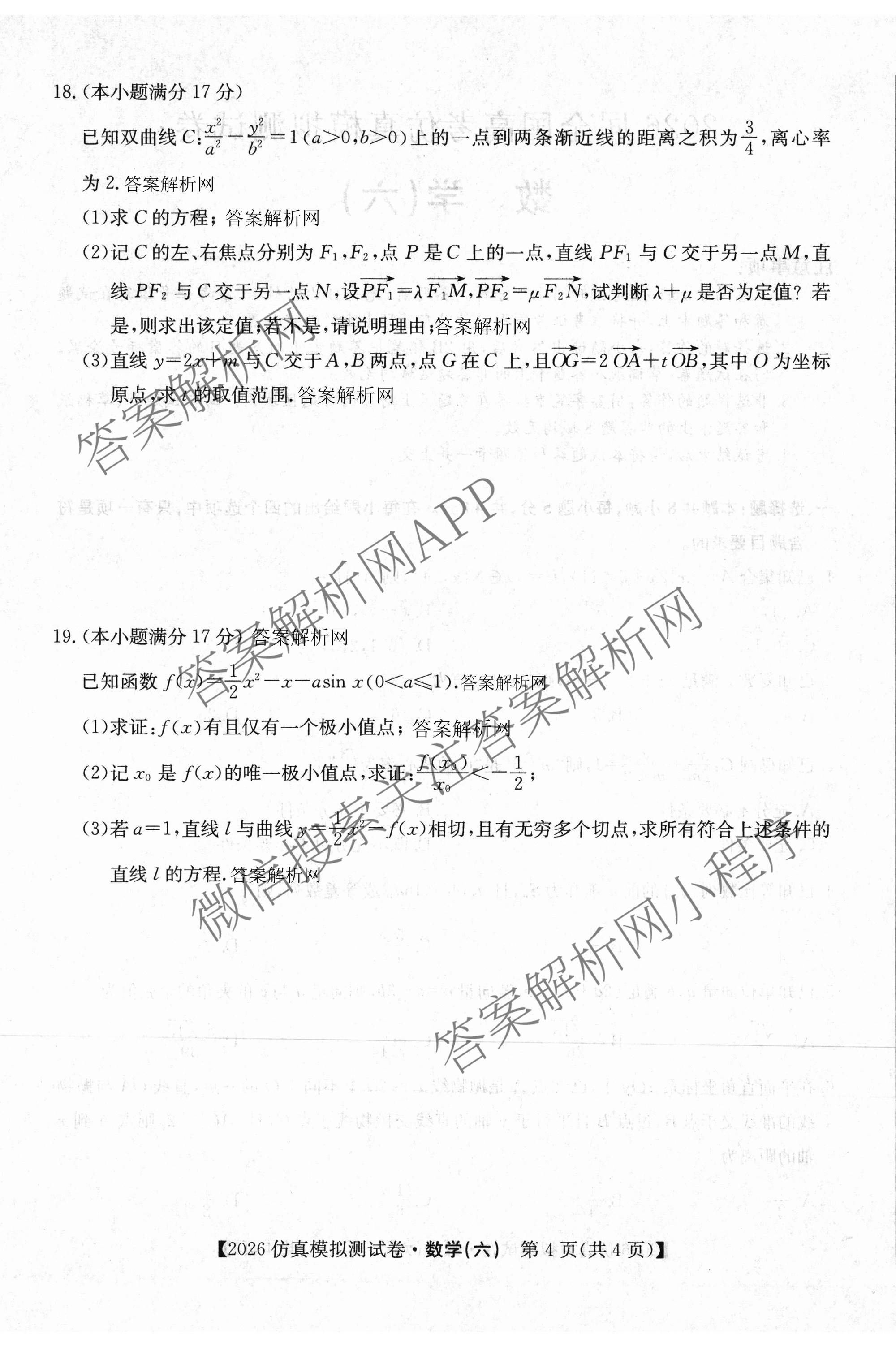 2026年全国高考仿真模拟测试卷(六)6数学试题,目前衡水金卷先享题答案网已经汇总了2026年全国高考仿真模拟测试卷(六)6数学试题的各科答案和试卷,获取更多全国高考仿真模拟测试卷答案解析,请在关注本站。