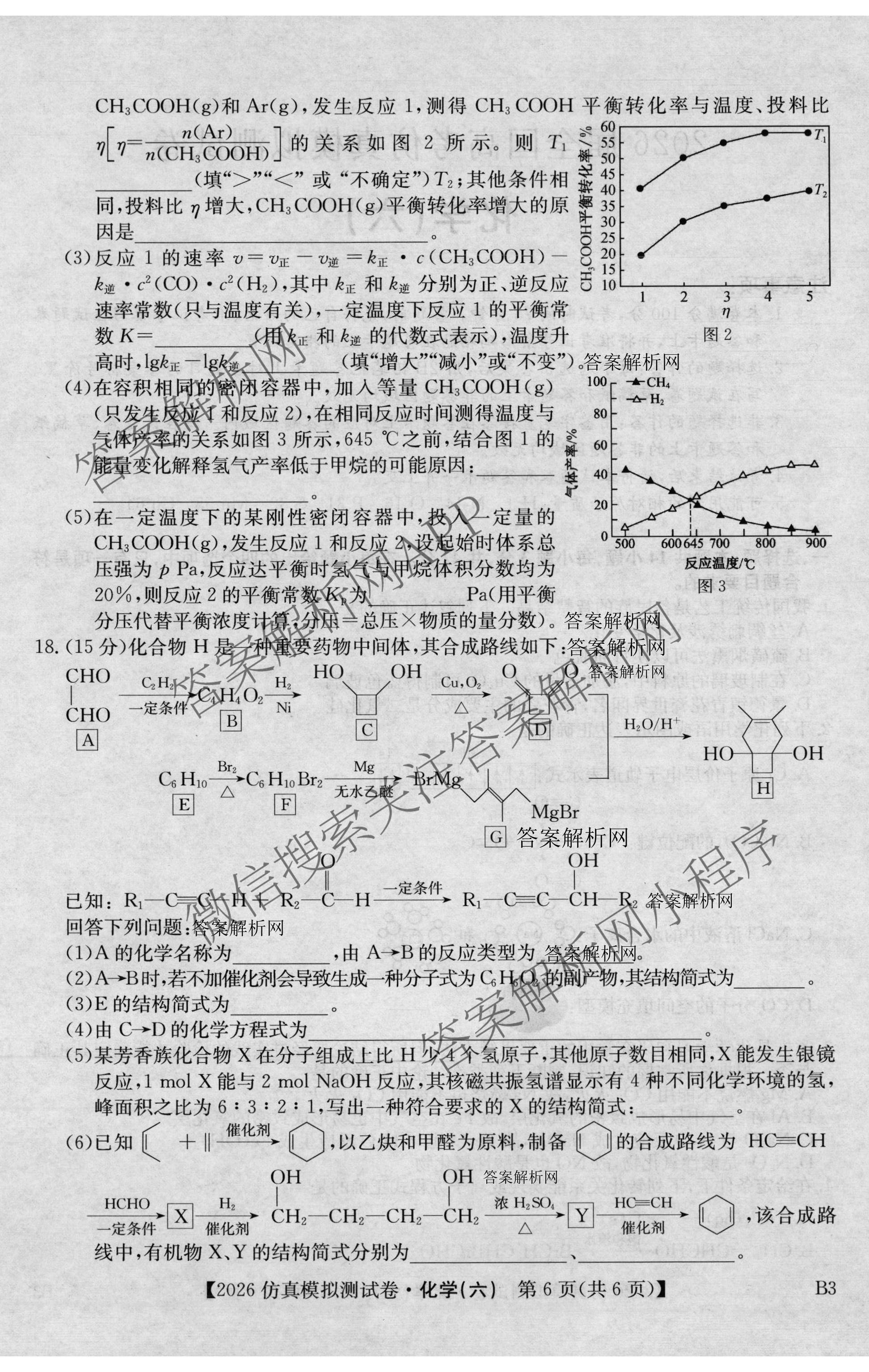 - [高三]2026年[全国高考仿真模拟测试卷](六)6化学(B3)答案