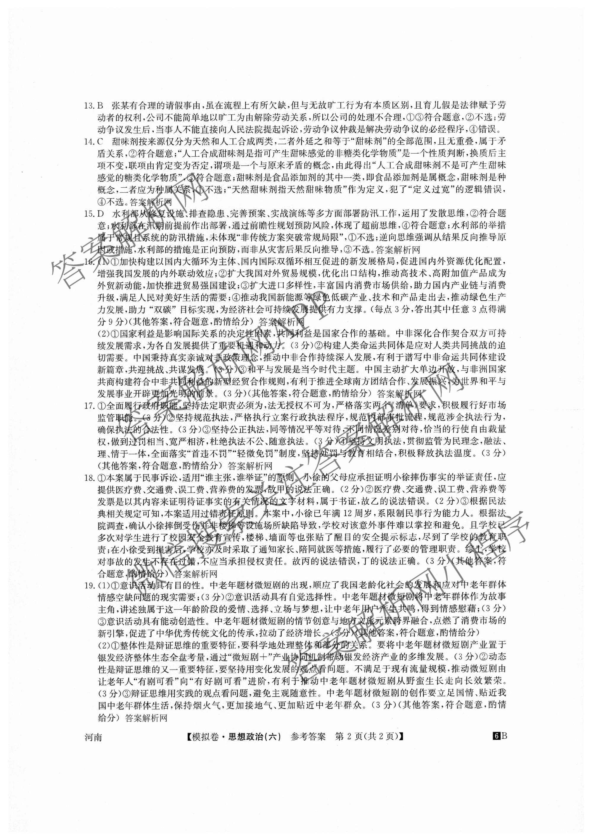 2026年全国高考仿真模拟测试卷(六)6政治(河南)答案