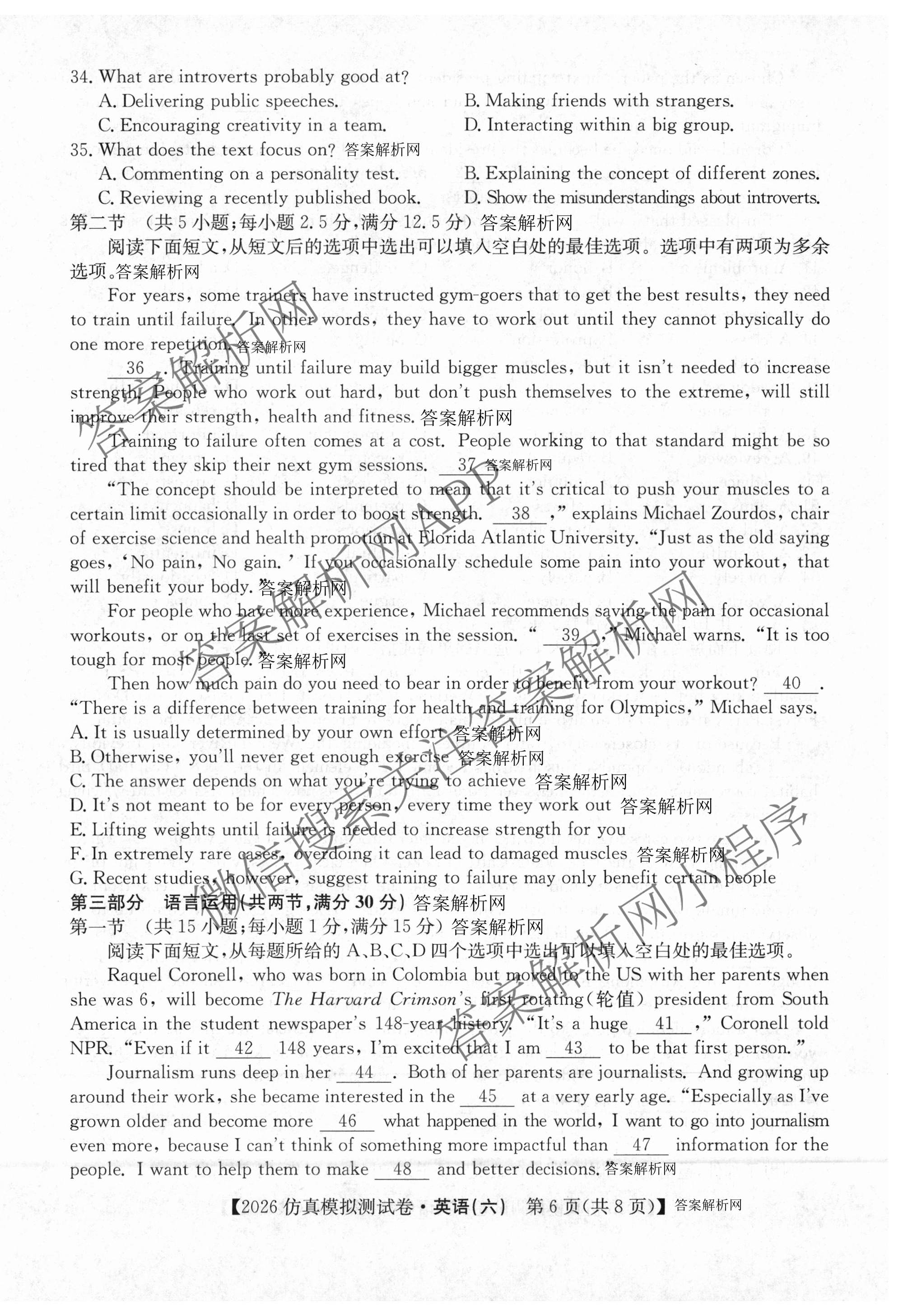 2026年全国高考仿真模拟测试卷(六)6英语试题,目前衡水金卷先享题答案网已经汇总了2026年全国高考仿真模拟测试卷(六)6英语试题的各科答案和试卷,获取更多全国高考仿真模拟测试卷答案解析,请在关注本站。