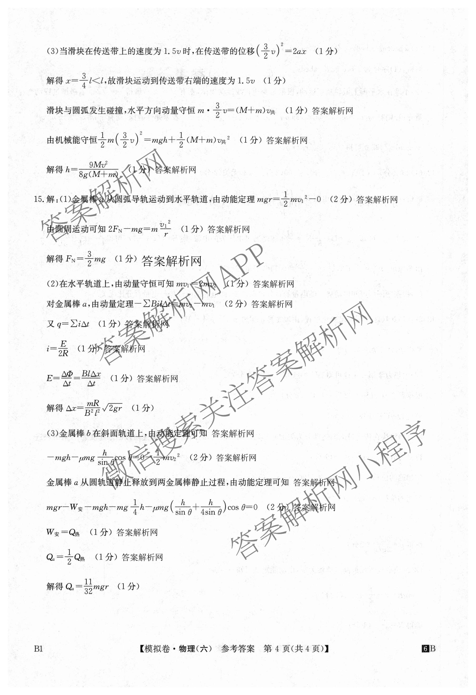 - (高三)2026年(全国高考仿真模拟测试卷)(六)6物理(B1)答案