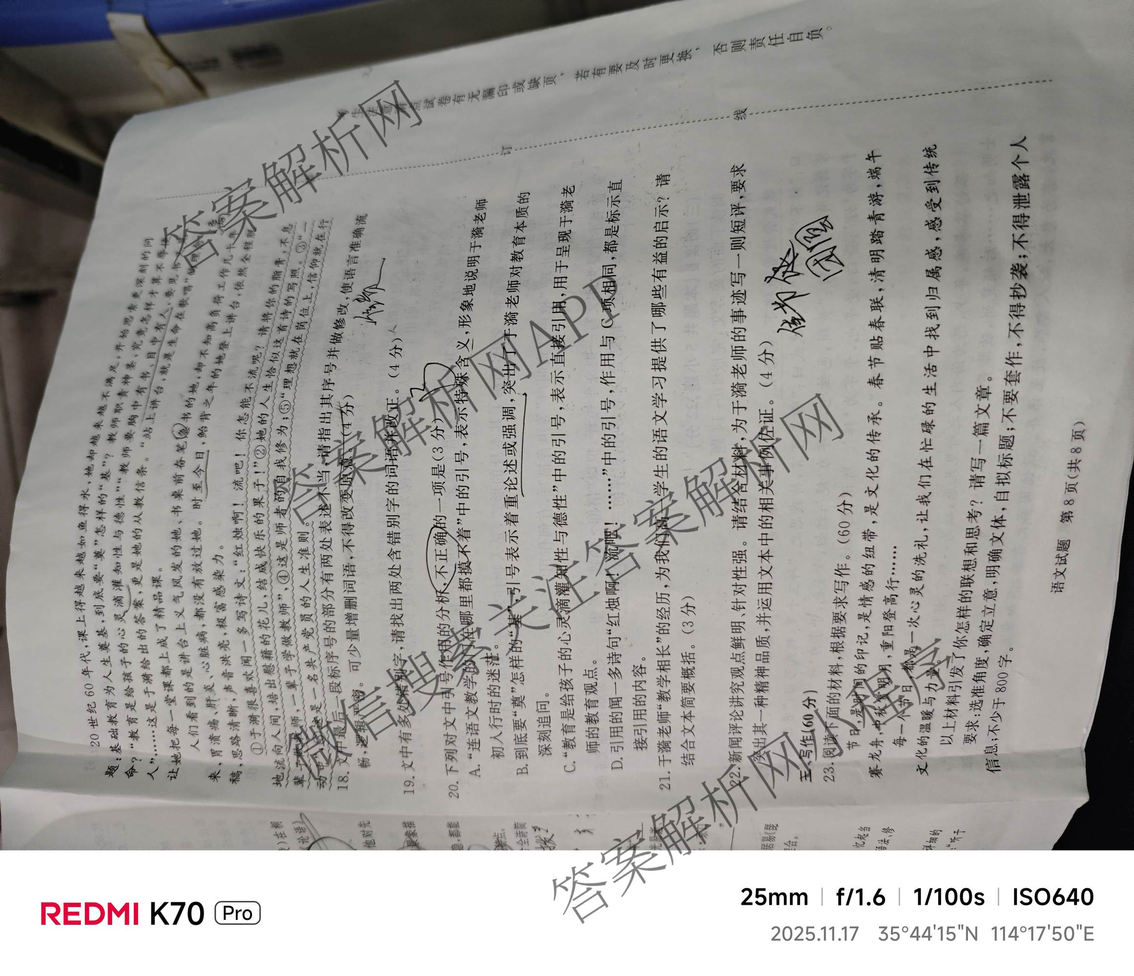 - 2028届[高一]青桐鸣·普通高等学校招生全国统一考试·青桐鸣大联考()(11.17)语文试题