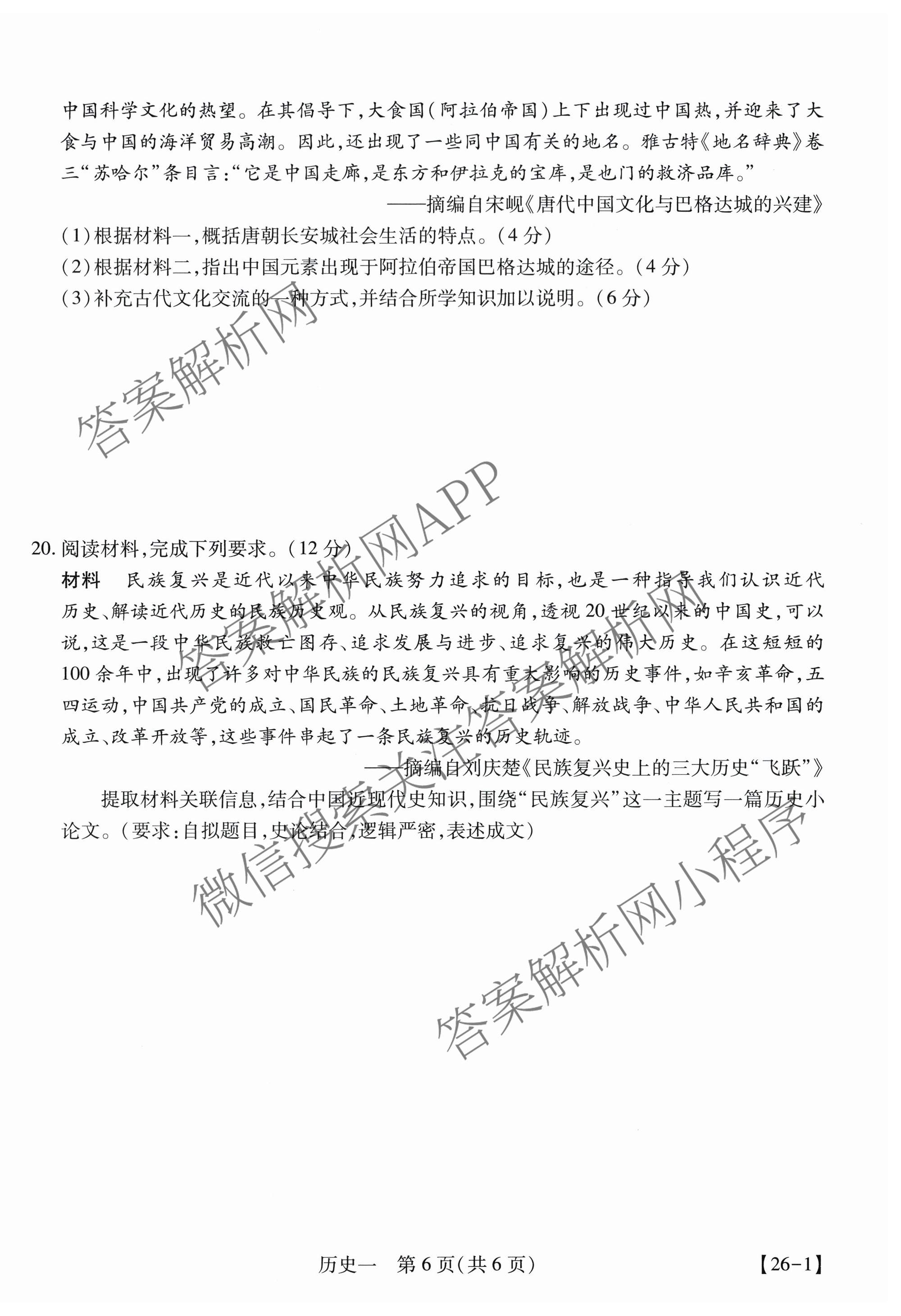 - 2026届[高考模拟冲刺预测训练](智慧上进)名校学术联盟高考模拟信息卷&冲刺卷&预测卷(一)1历史(26-1)答案