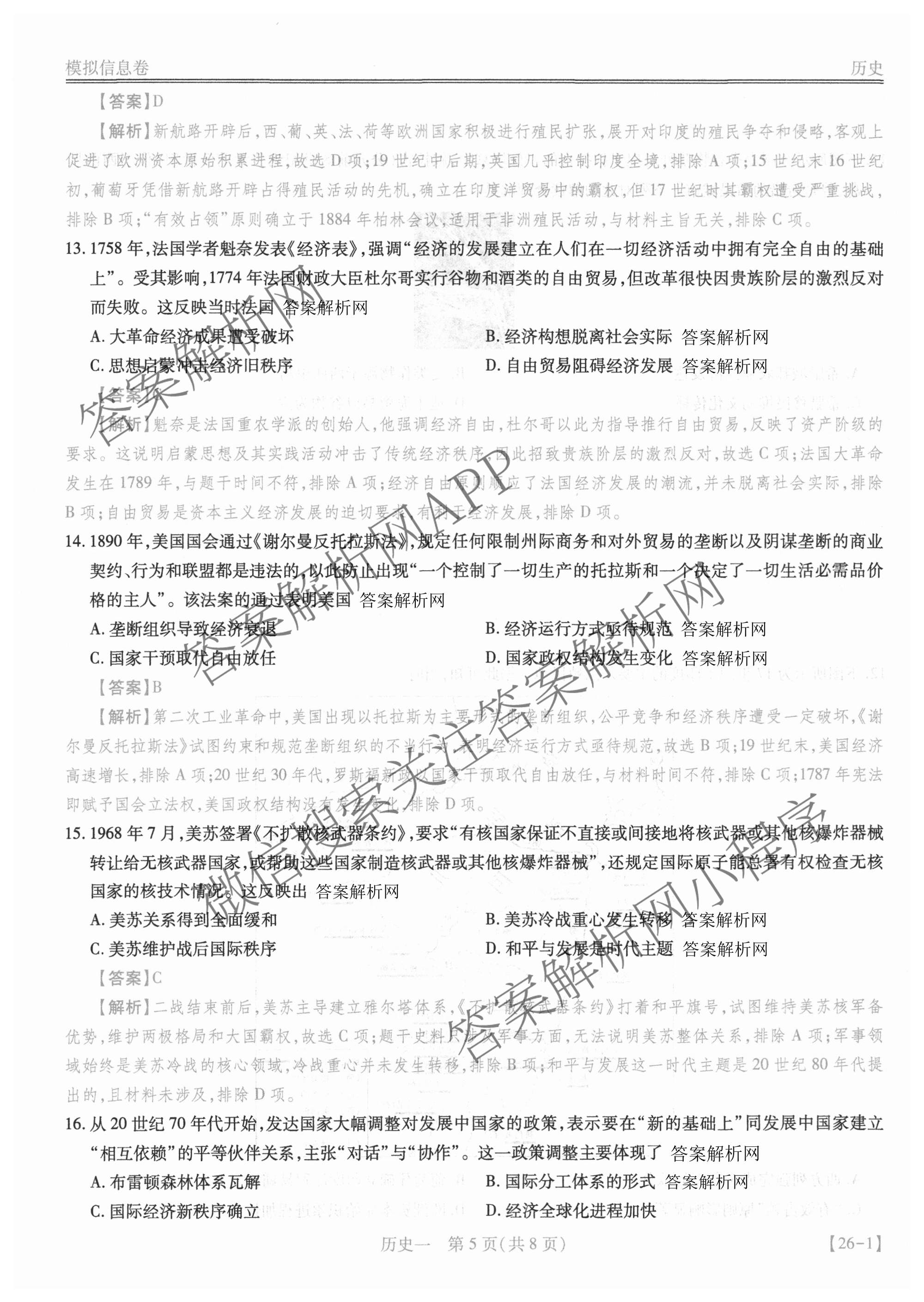 - 2026届[高考模拟冲刺预测训练](智慧上进)名校学术联盟高考模拟信息卷&冲刺卷&预测卷(一)1历史(26-1)答案