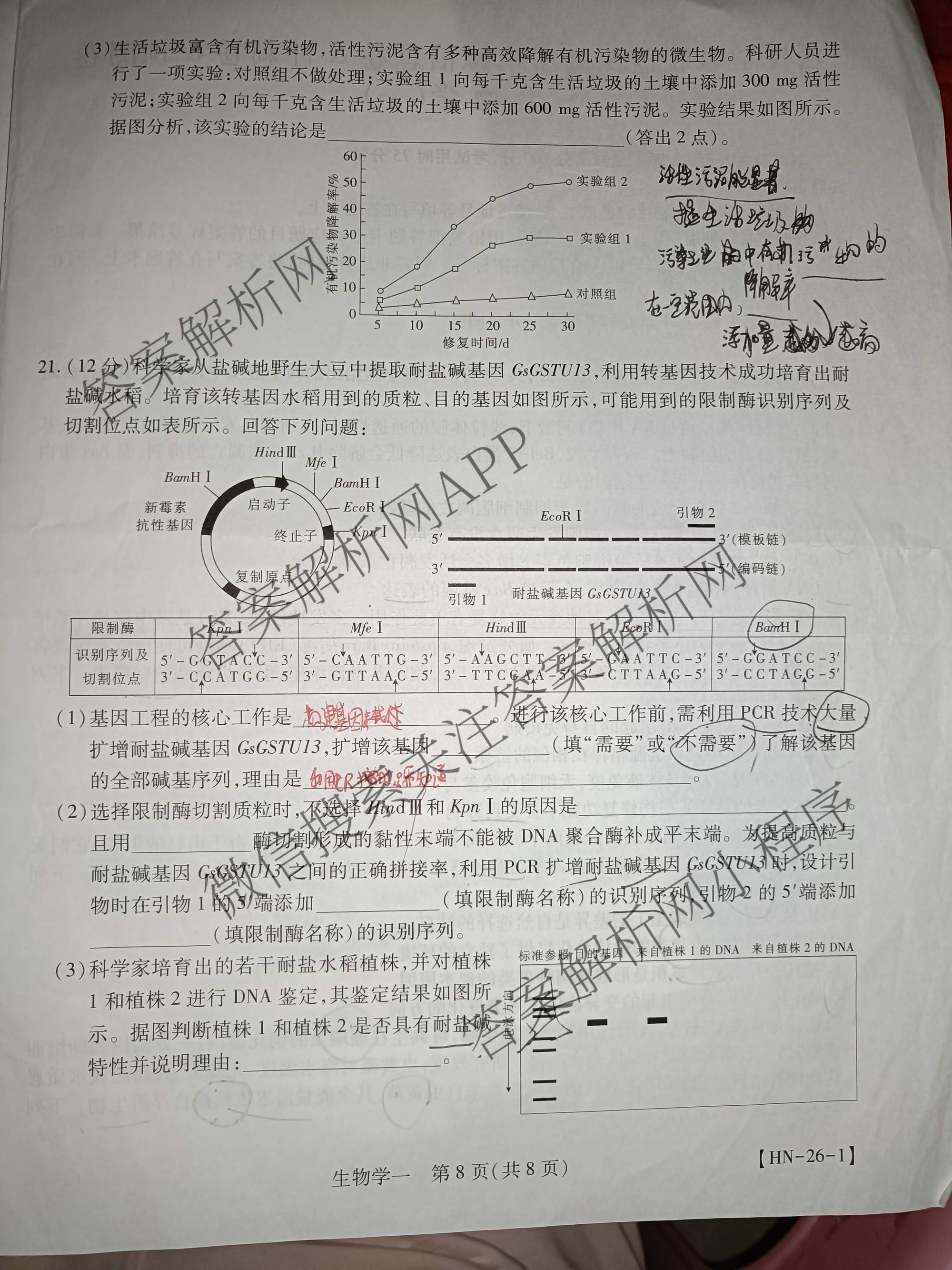 - [高三][高考模拟·冲刺·预测训练]2026届[智慧上进]·名校学术联盟·高考模拟信息卷&冲刺卷&预测卷(一)1生物(HB-26-1)答案