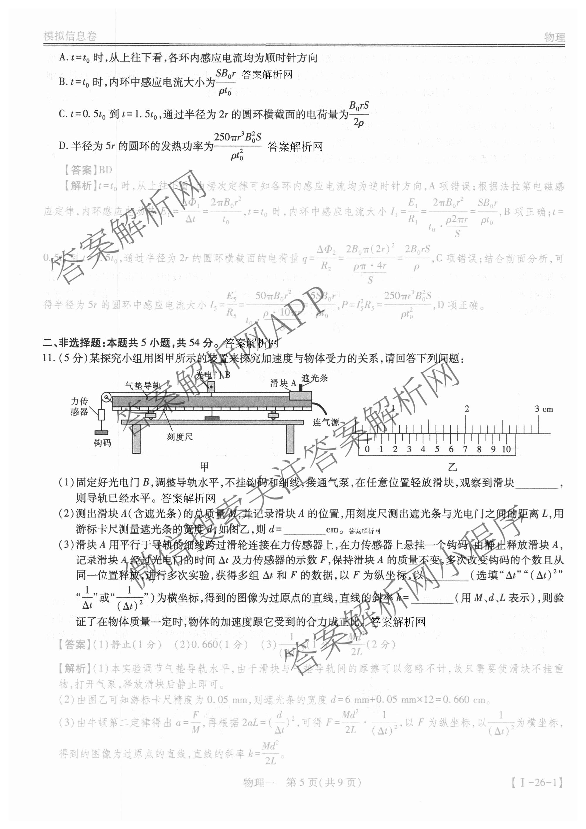 - [高考模拟·冲刺·预测训练]2026届(智慧上进)·名校学术联盟·高考模拟信息卷&冲刺卷&预测卷(一)1物理(II-26-1)答案
