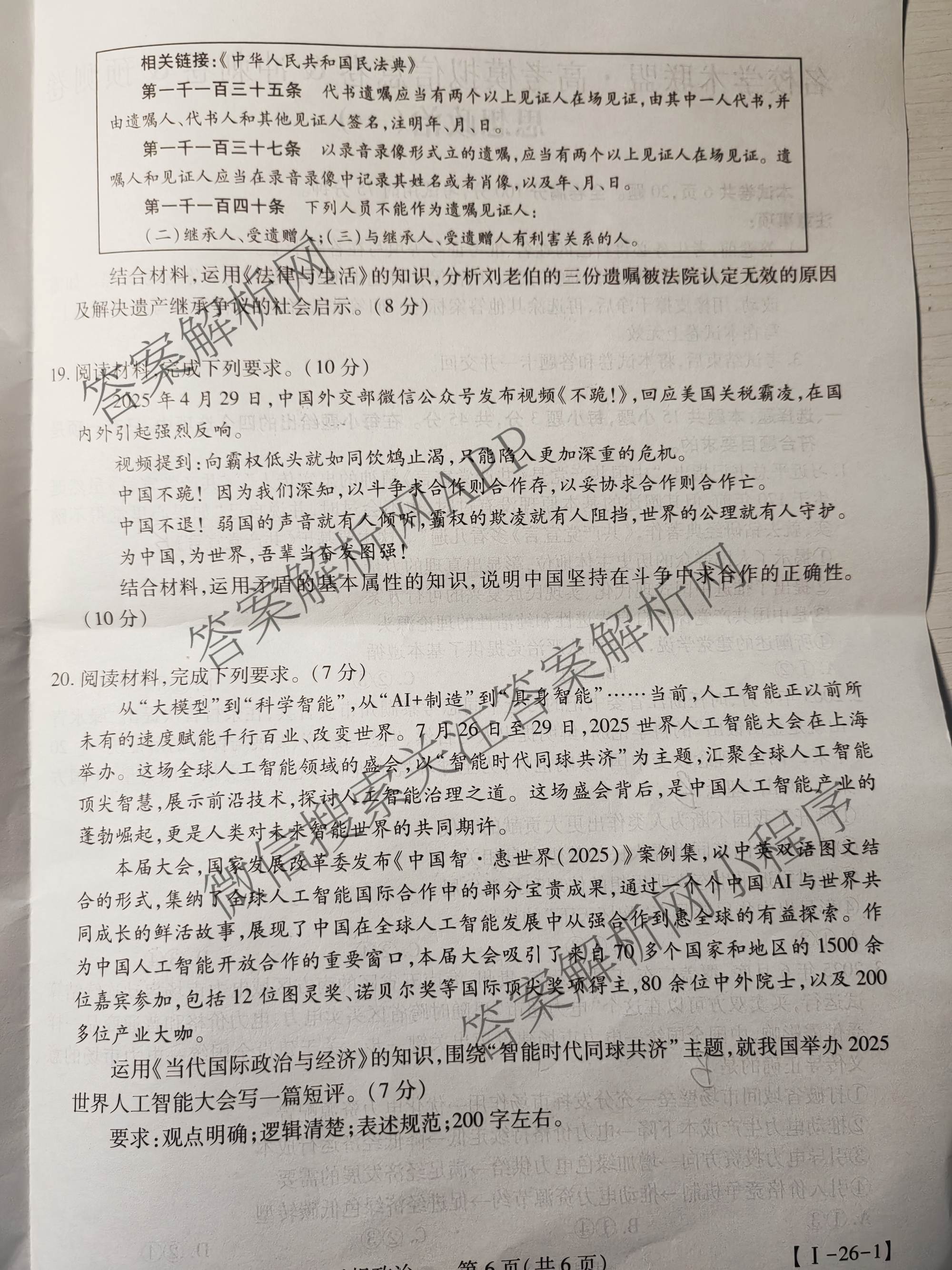 - 2026届(高三)[高考模拟·冲刺·预测训练][智慧上进]·名校学术联盟·高考模拟信息卷&冲刺卷&预测卷(一)1政治(26-1)试题