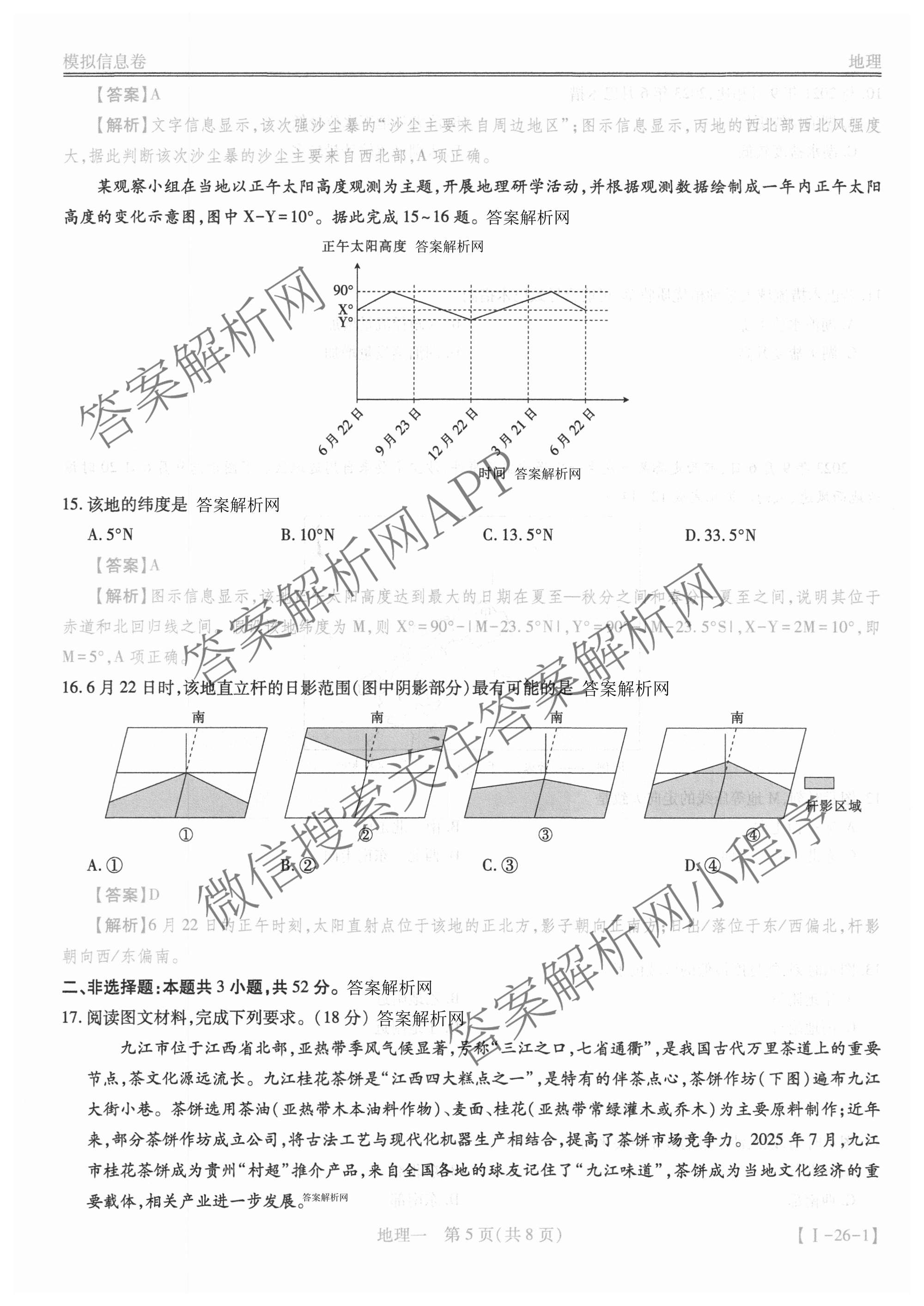 2026届[高考模拟·冲刺·预测训练](智慧上进)·名校学术联盟·高考模拟信息卷&冲刺卷&预测卷(一)1地理(I-26-1)答案