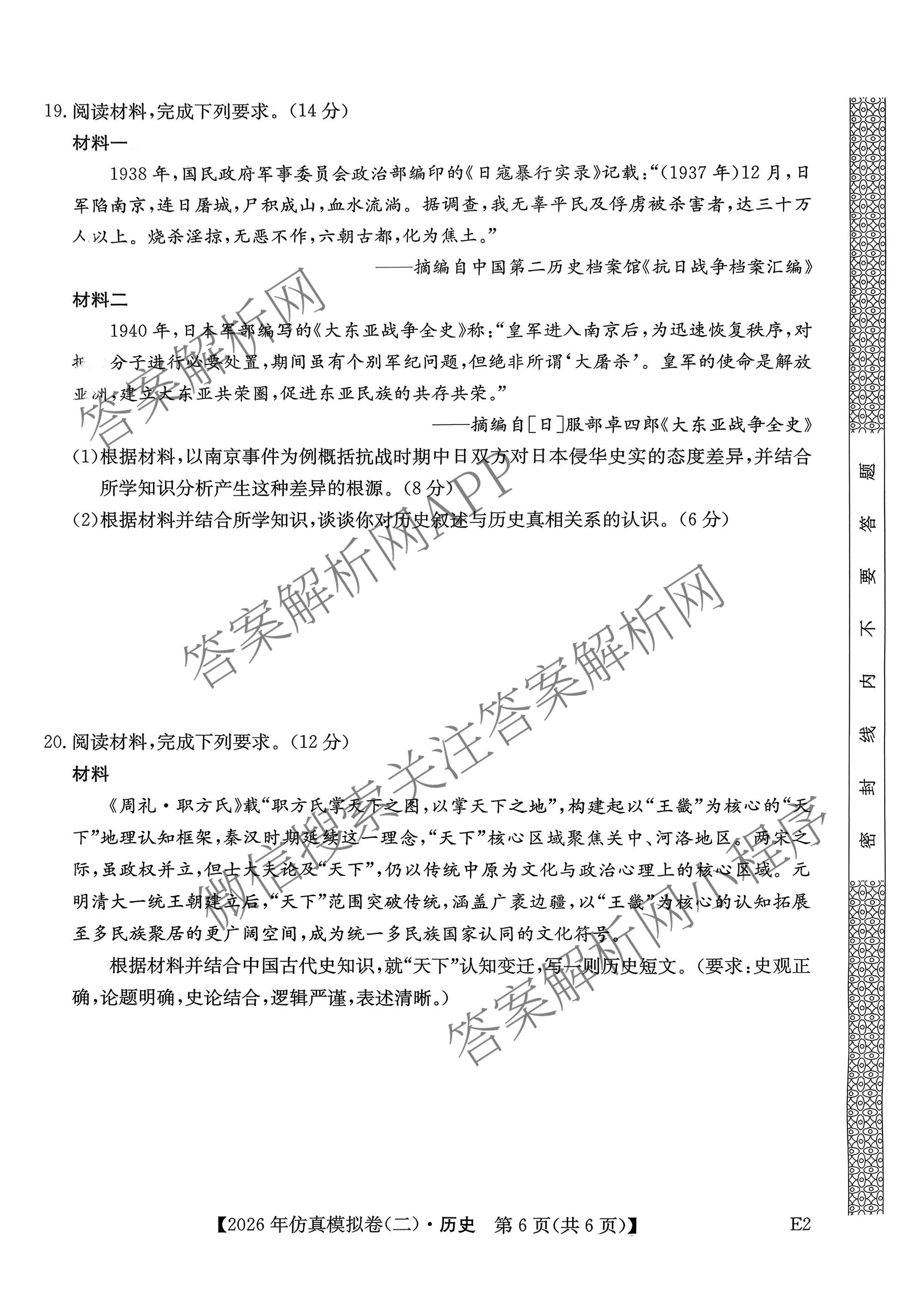 - [高三]2026年普通高中学业水平选择性考试仿真模拟卷(二)2历史(E3)试题