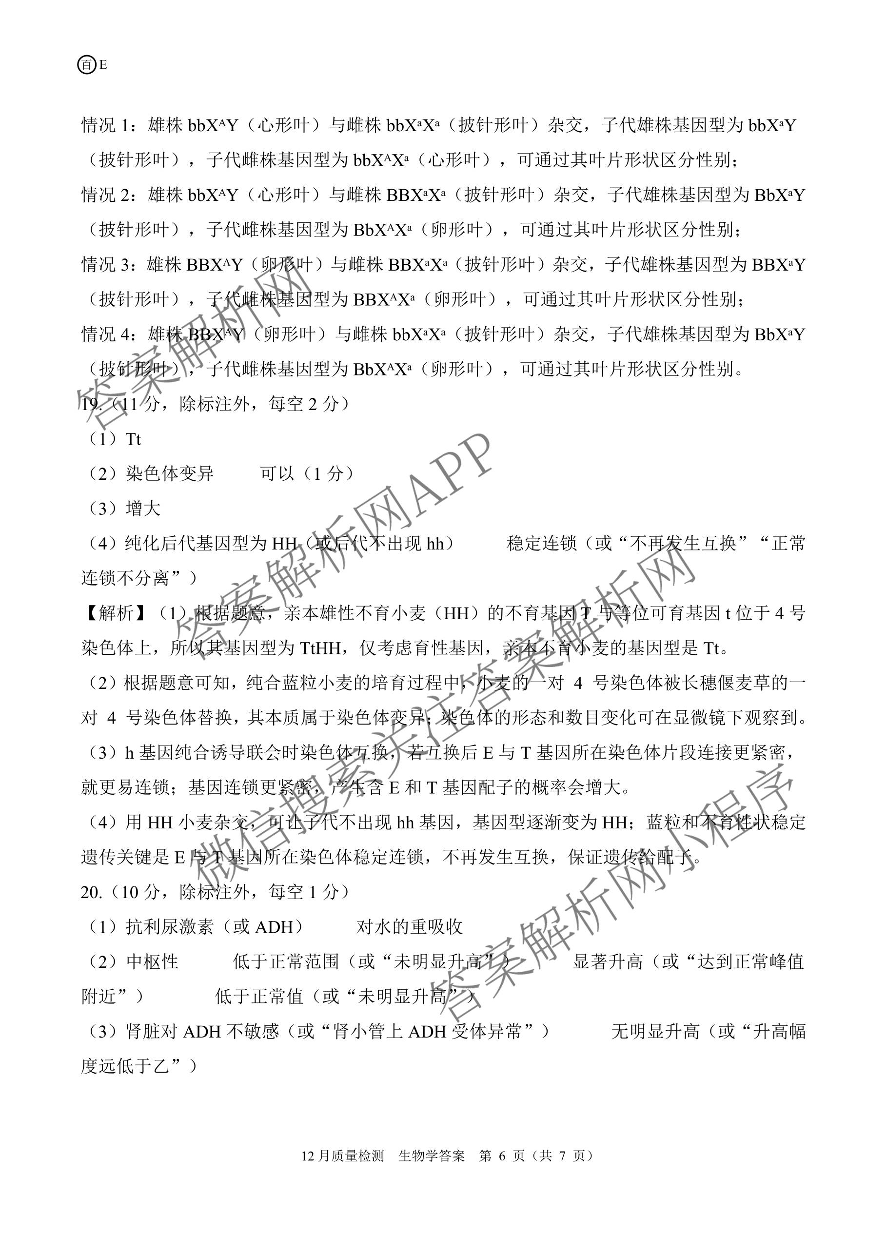 [高三][百师联盟]2026届一轮复习12月质量检测(12.24)生物(百E)答案