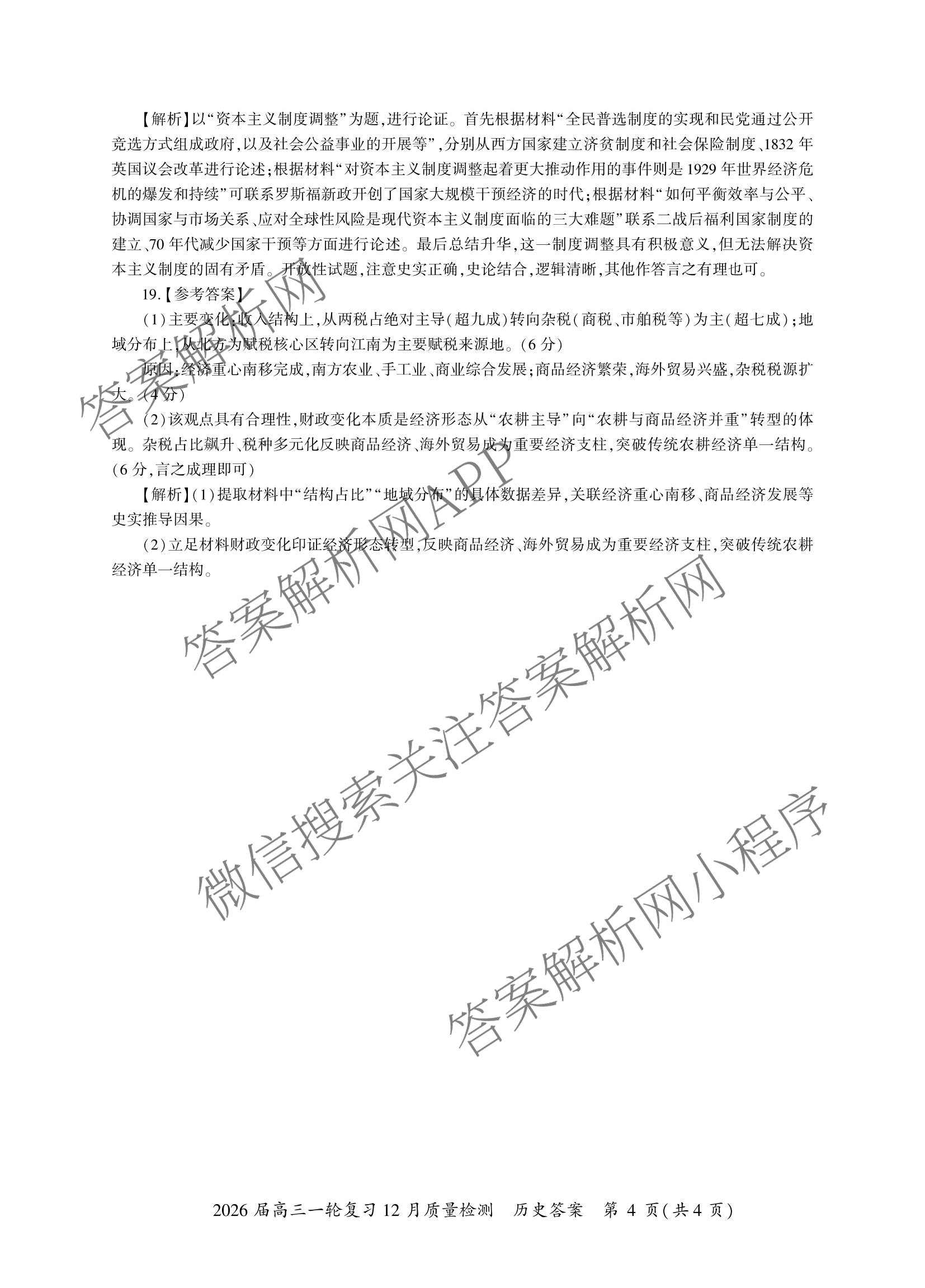 - (高三)(百师联盟)·2026届一轮复习12月质量检测(12.24)历史(百K)答案