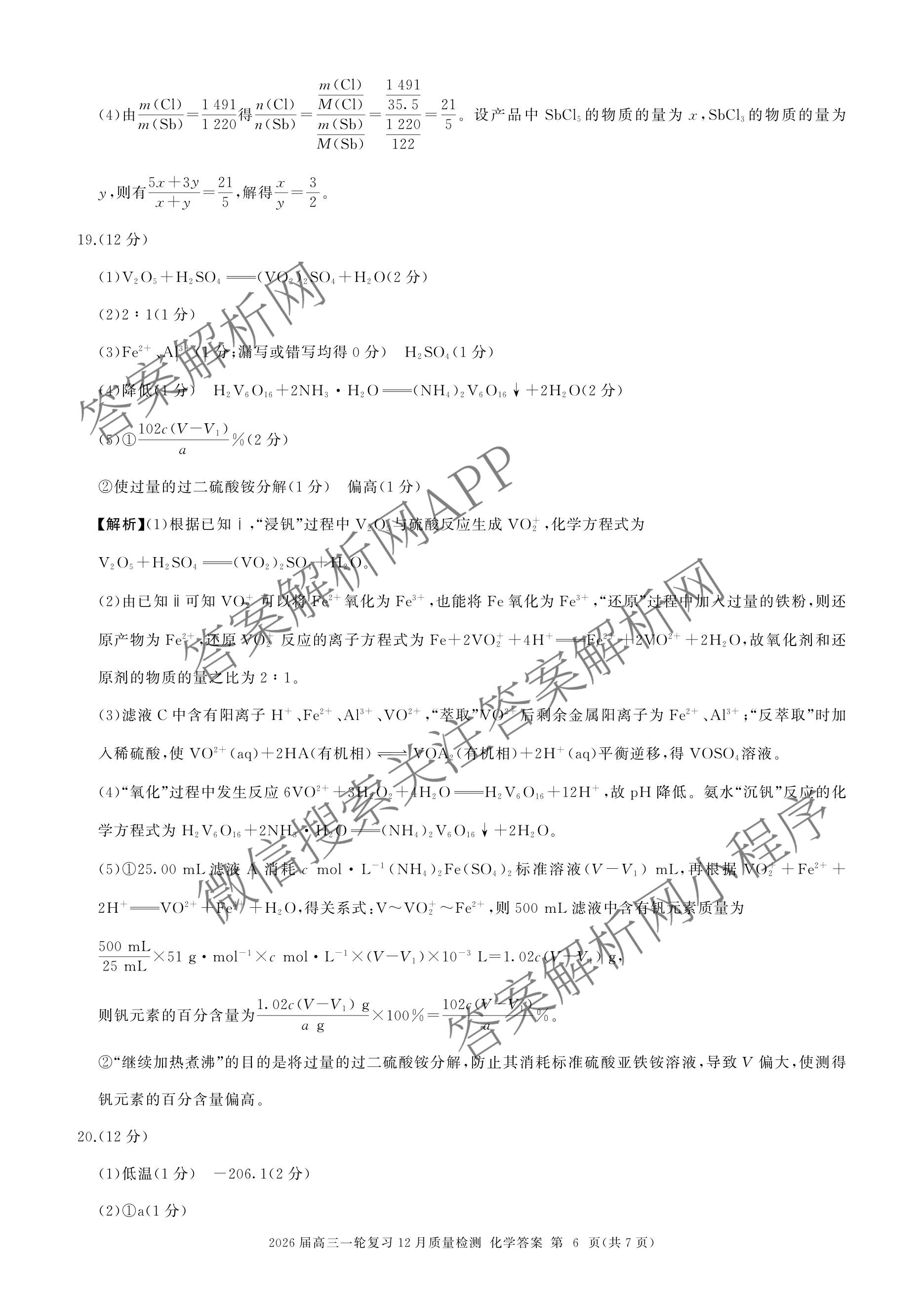 - (高三)(百师联盟)·2026届一轮复习12月质量检测(12.24)化学(百C)答案