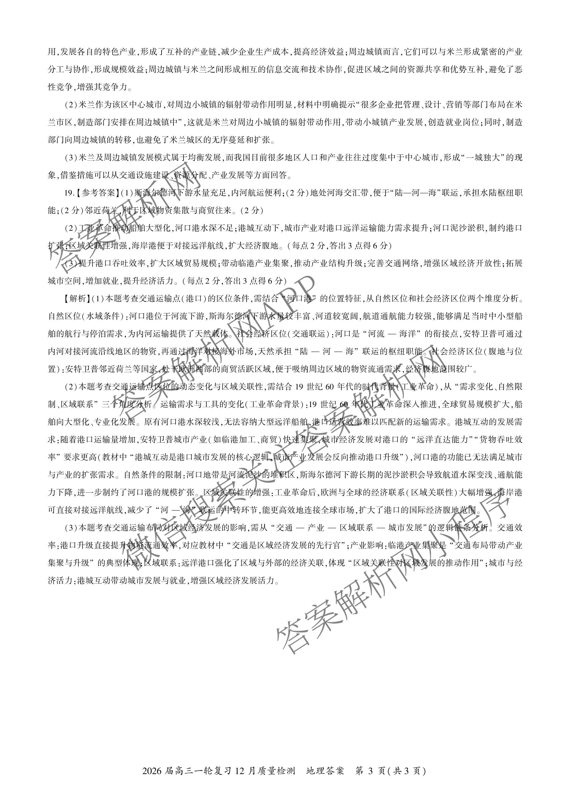 - 2026届[百师联盟](高三)一轮复习12月质量检测(12.24)地理(百AH)答案