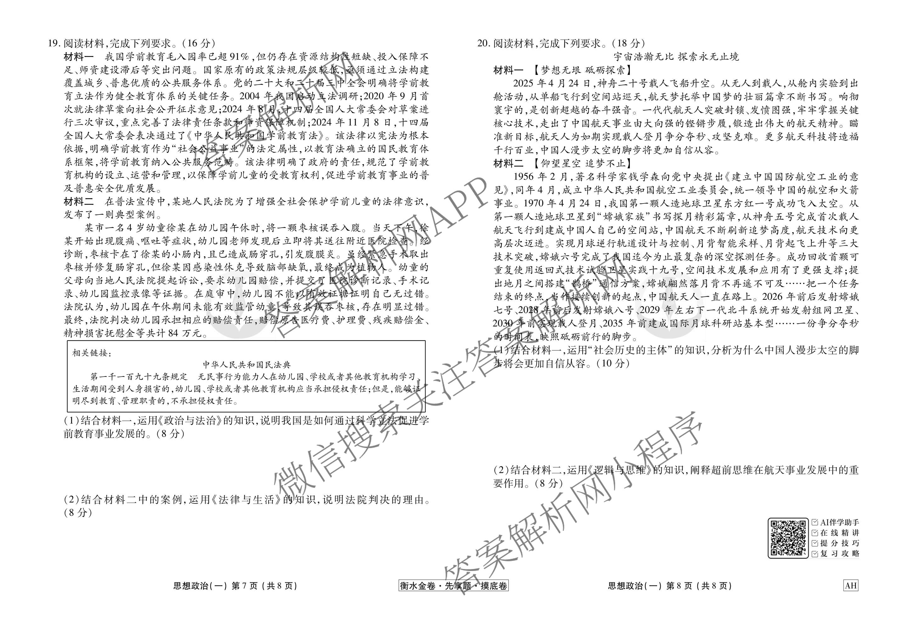 - 2025~2026高三衡水金卷先享题摸底卷学年度一轮复习摸底测试卷(一)1政治(AH)试题