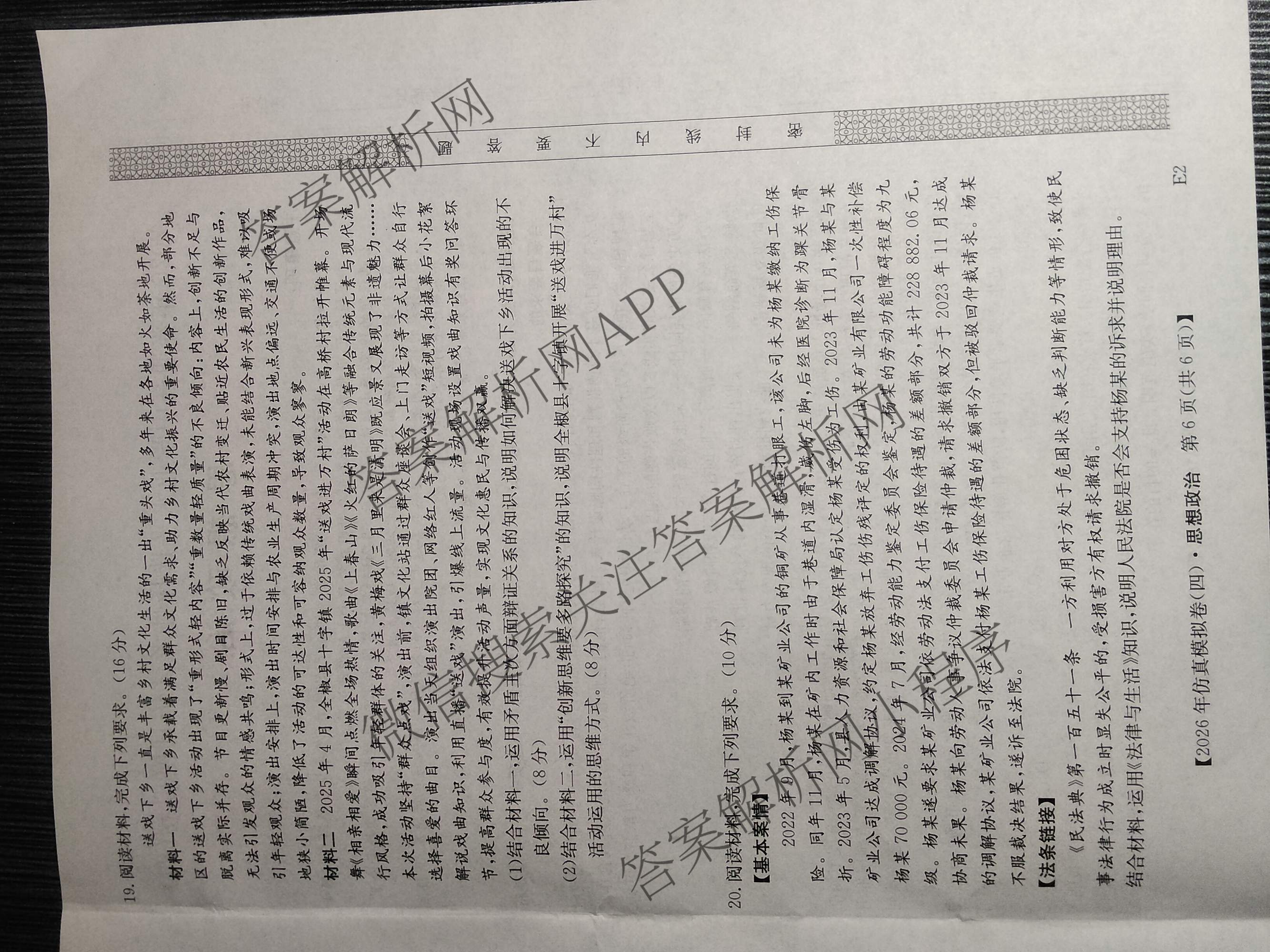 - [高三]2026年普通高中学业水平选择性考试仿真模拟卷(四)4政治(E2)答案